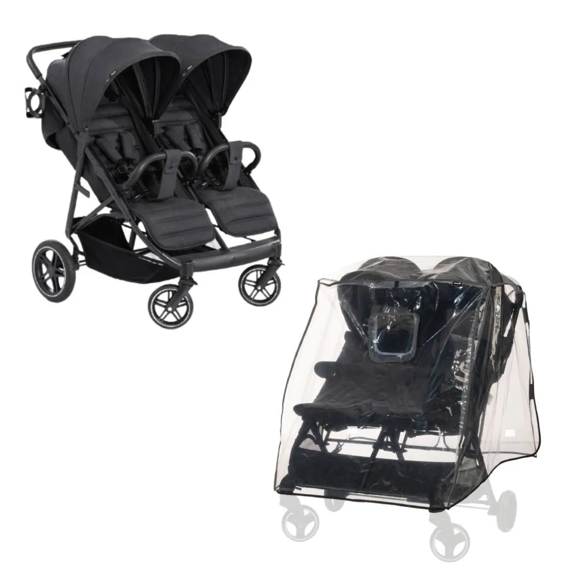 Poussette double Uptown Duo Noir + Habillage pluie pour poussette Pushchair Raincover Duo