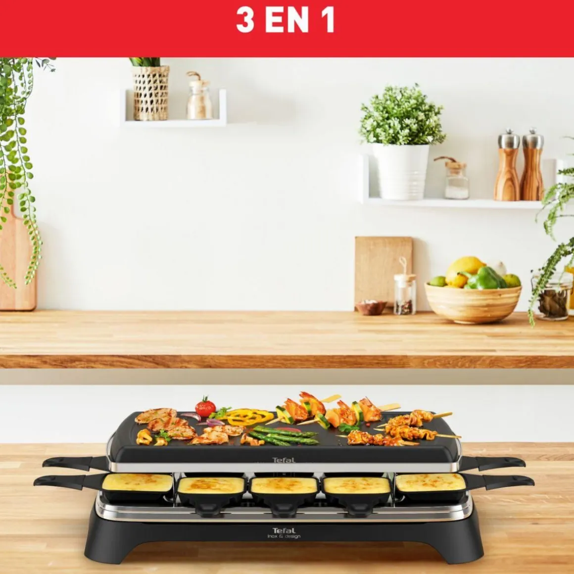 Raclette RE45A812 Pierrade 3 en 1