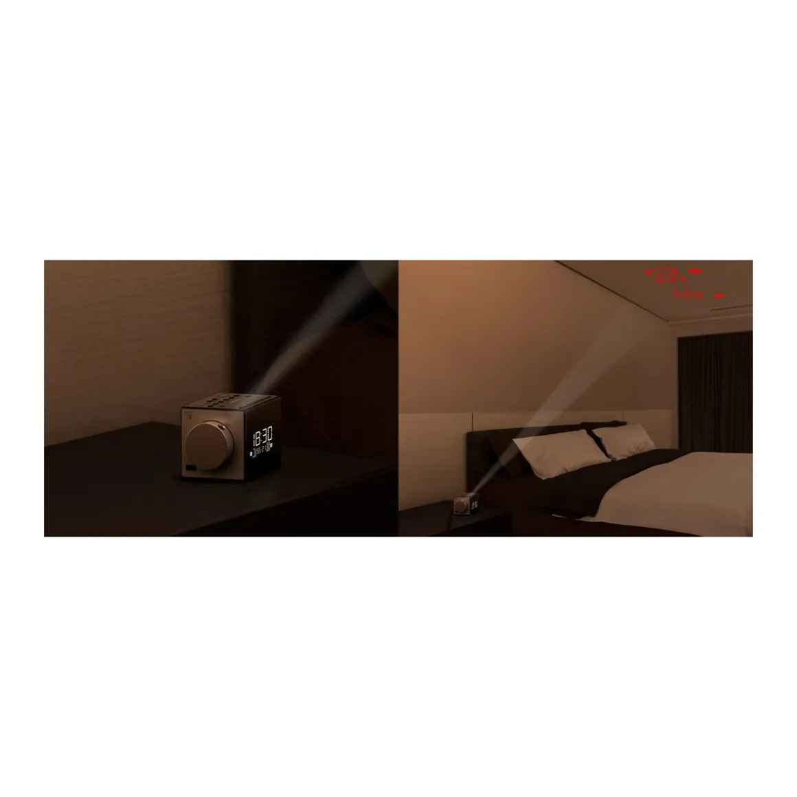 | Avantages | Tuner FM et AM, Réveil progressif, Projection murale, Batterie de secours | |