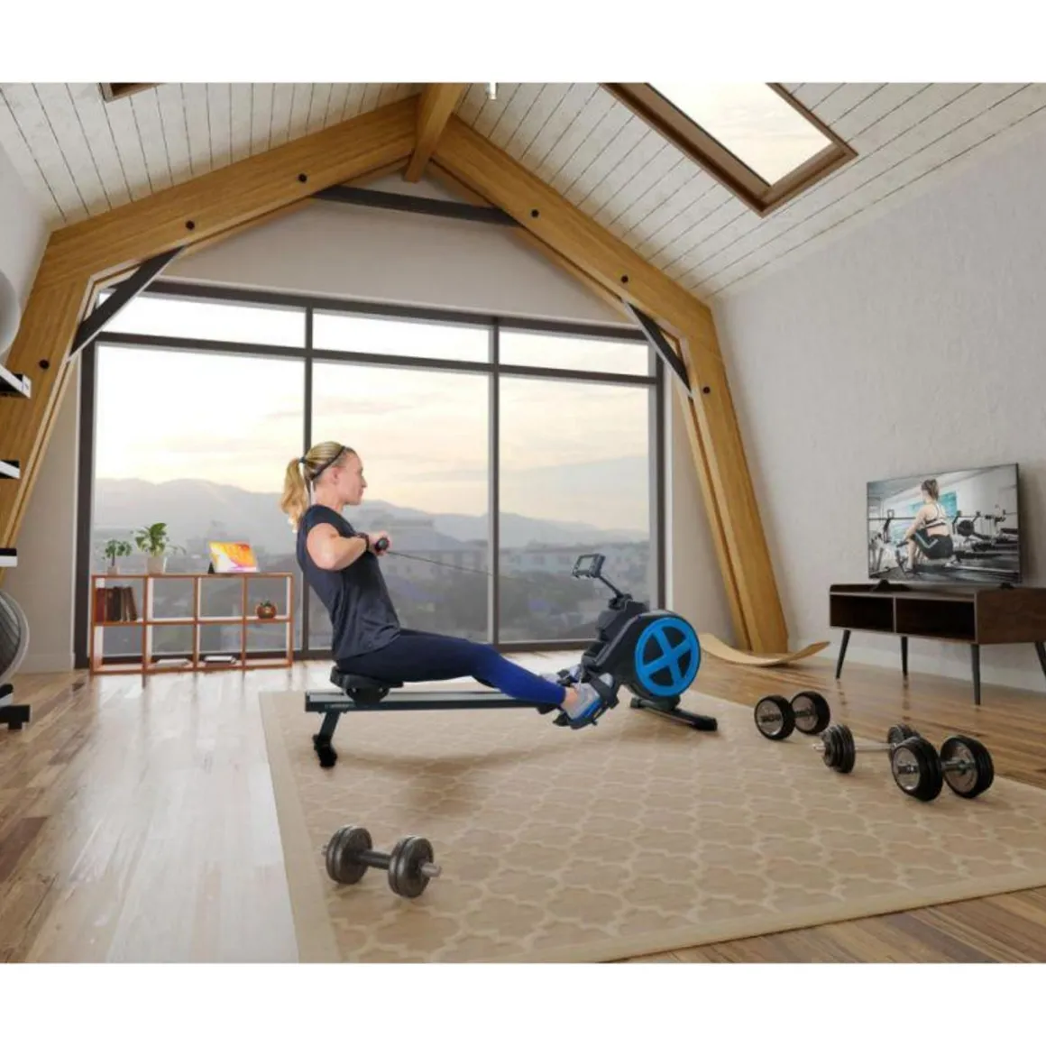 - Dimensions du rameur : 164 x 60 x 80 cm