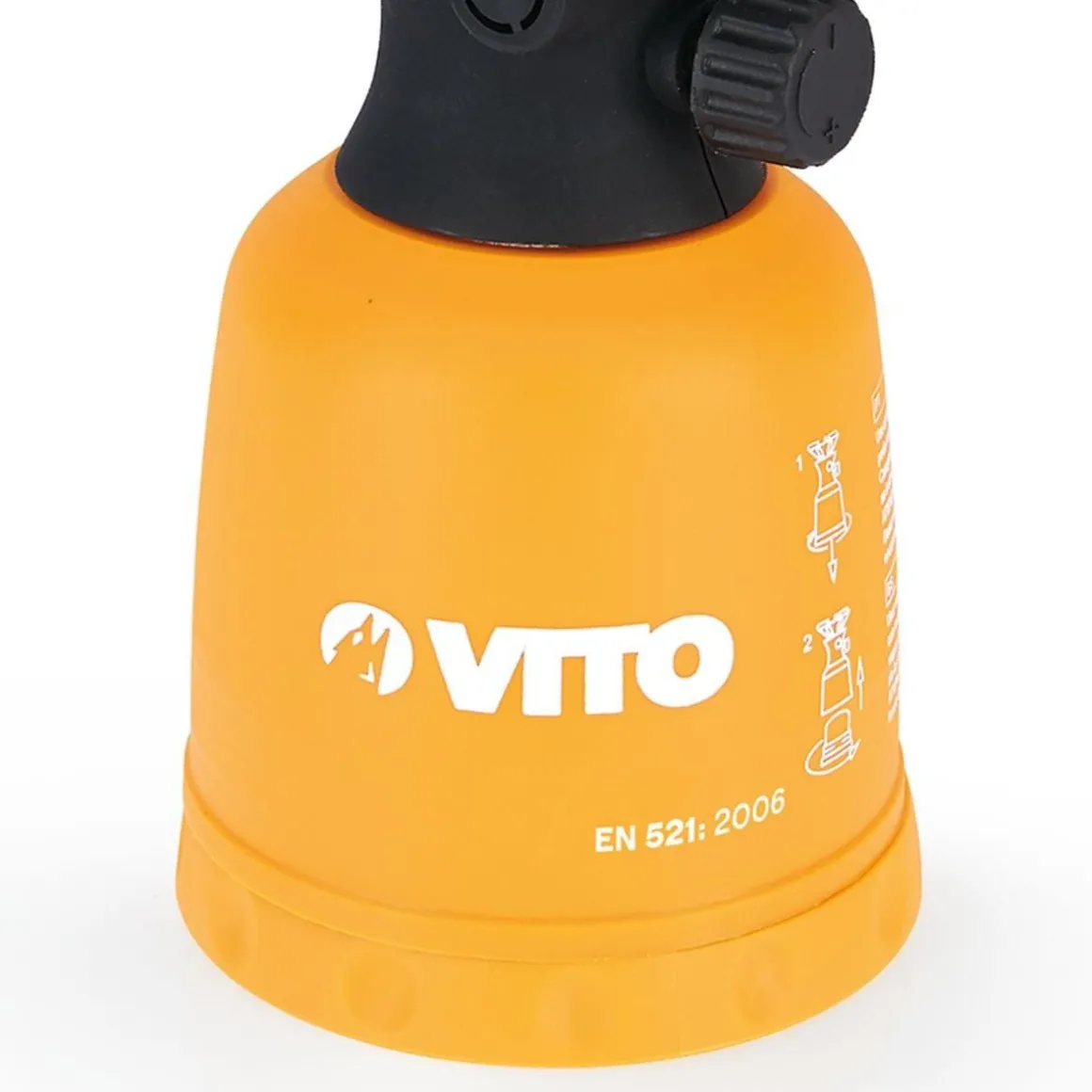 Le réchaud à gaz VITO est doté d’un allumage piézo d’une coque en ABS et d’une plaque en acier inoxydable. La plaque permet une bonne stabilisation des casseroles ou poêles. Fonctionne avec une cartouche de gaz perçable de 190g. Cet appareil est conçu pour les randonnées et le camping. Il est garanti 2 ans.