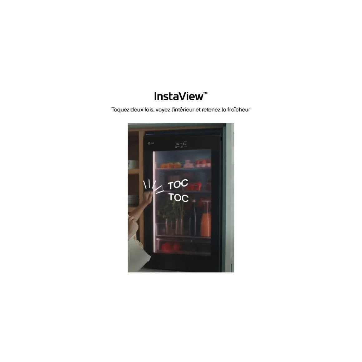 | Instaview | permet de vérifier le contenu du réfrigérateur sans ouvrir la porte, cela limite la déperdition d’air froid. Frappez deux fois sur la porte et l’intérieur s’éclaire. | |