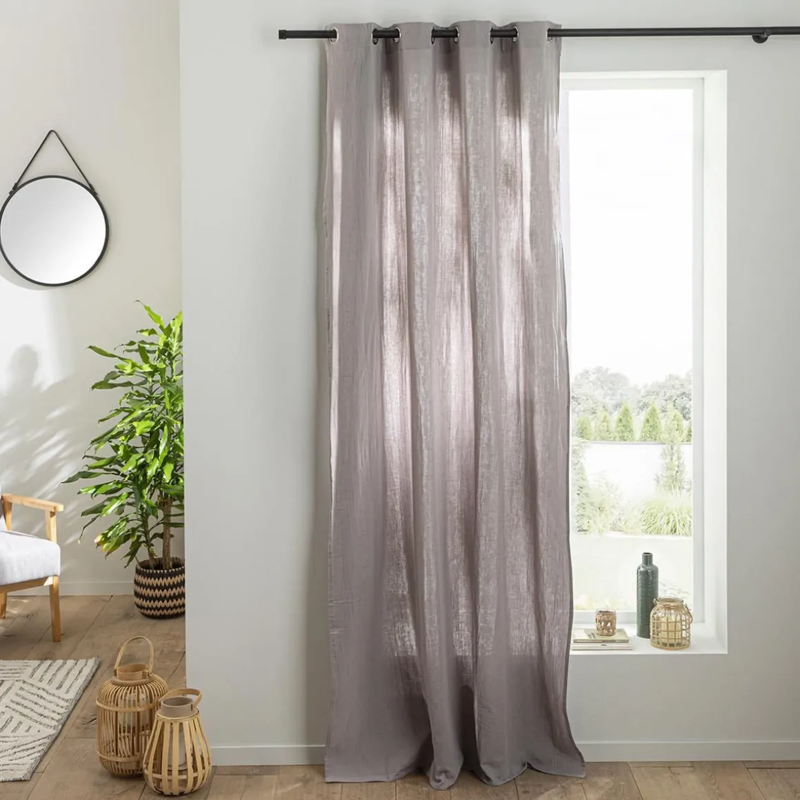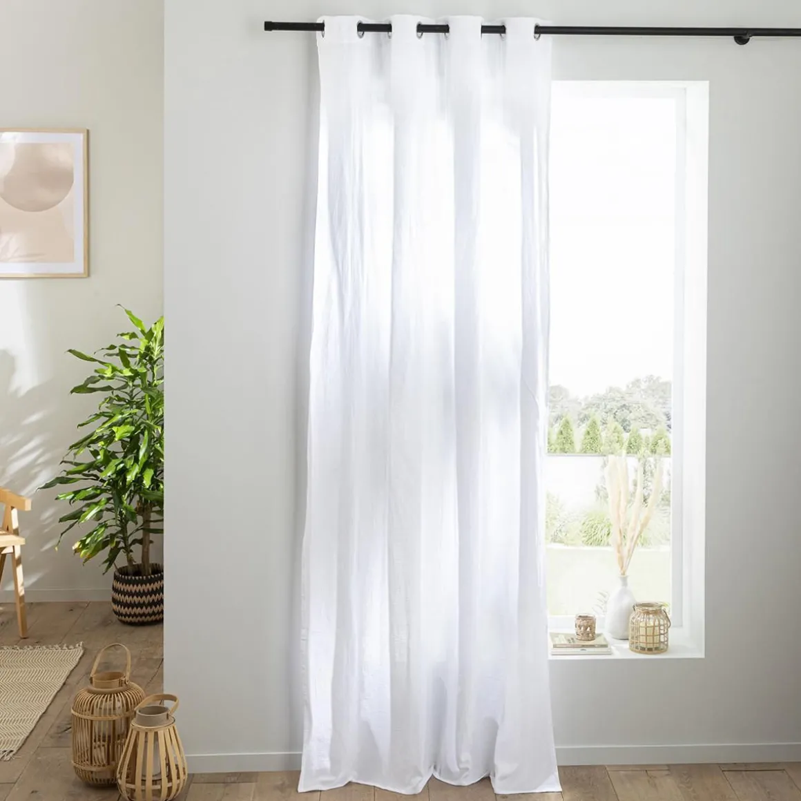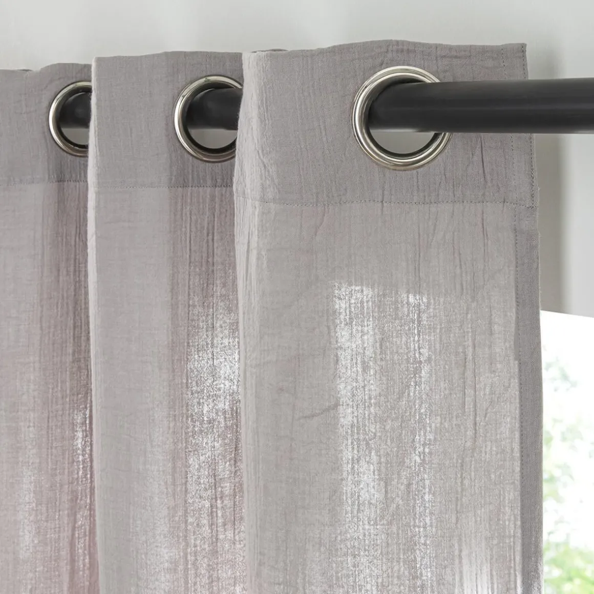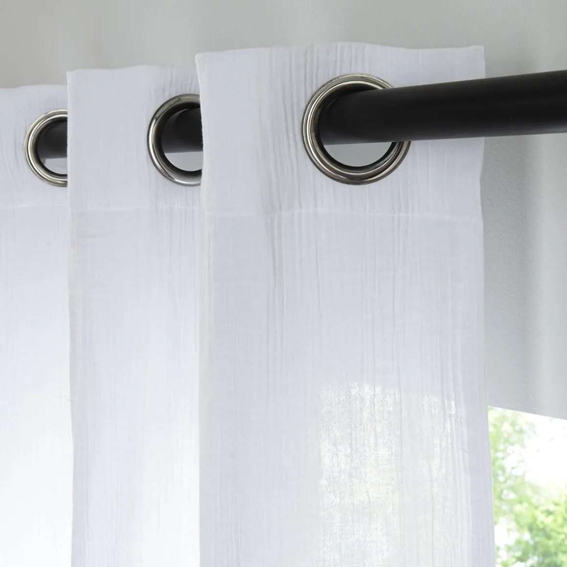 Rideau en gaze de coton vendu à l’unité, monté sur œillet en métal 140×260. Légèrement opaque, ce rideau tombe parfaitement. Un rideau monté sur œillets passe tringle pour une installation facile sur la barre à rideaux.