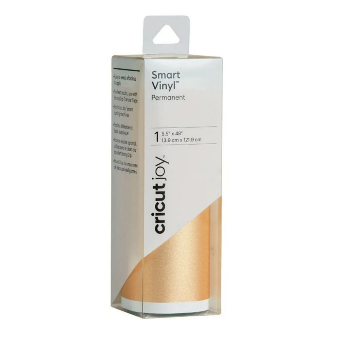 Personnalisez vos créations en un rien de temps grâce à ce rouleau de vinyle permanent ! Il vous suffira de découper le motif ou l’écriture souhaité à l’aide de votre machine de découpe puis de le déposer sur la surface souhaitée. Pour plus de facilité, vous pouvez utiliser une bande de transfert. Il est possible de l’utiliser avec n’importe quel matériau d’extérieur comme d’intérieur (verre, bois, pvc.). Vous pourrez ainsi décorer tout ce que vous souhaitez (coque de téléphone, verre, table, cahiers.). Ce vinyle est résistant à l’eau et aux UV ce qui lui permet de durer jusqu’à 3 ans. Il est compatible avec la machine de découpe Cricut Joy et ne nécessite pas de tapis de coupe. Découvrez également le reste de notre gamme de vinyles. Couleur : doré pailleté. Dimensions : 121,9 x 13,9 cm. Référence Cricut : 2007145