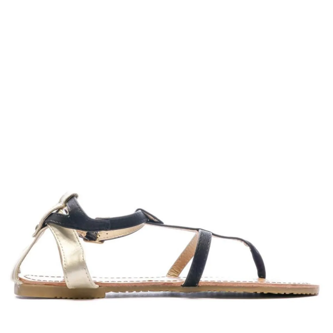 Sandales femme de la marque Beppi Tige basse en synthétique Sandales plate Coloris : Noir/Doré Fermeture à boucle Entre doigts