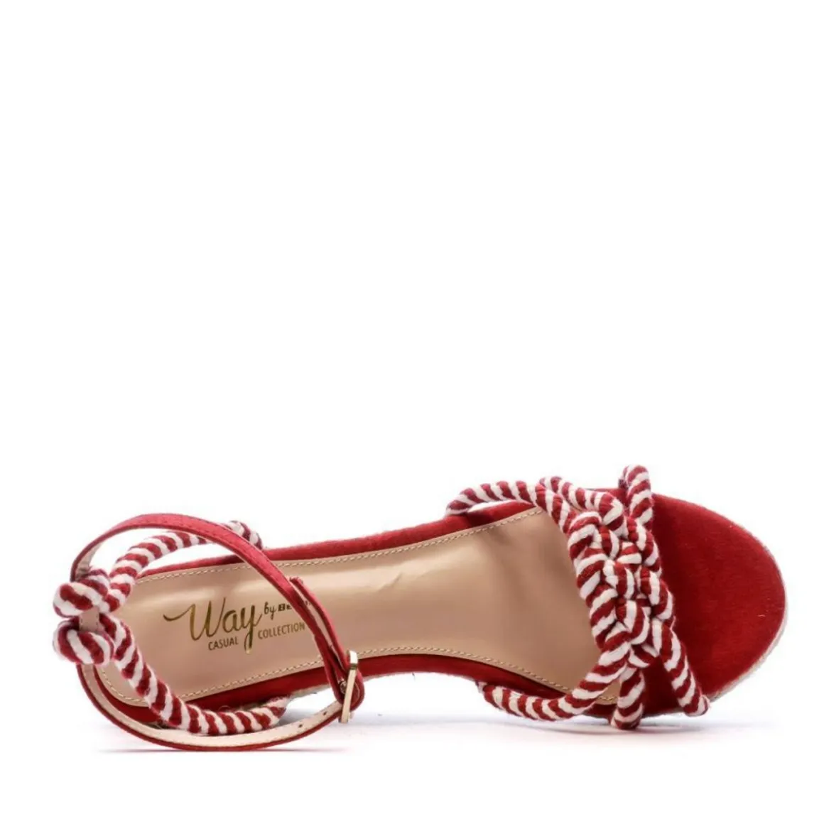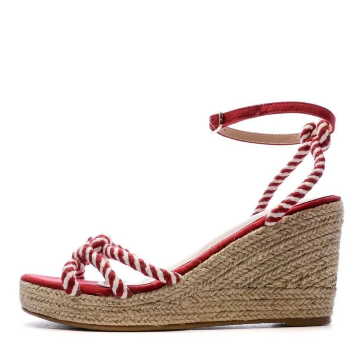 Craquez pour les sandales femme de la marque Beppi Tige en textile Talon en corde Bout ouvert Hauteur du talon 9cm Coloris : Rouge Semelle en caoutchouc
