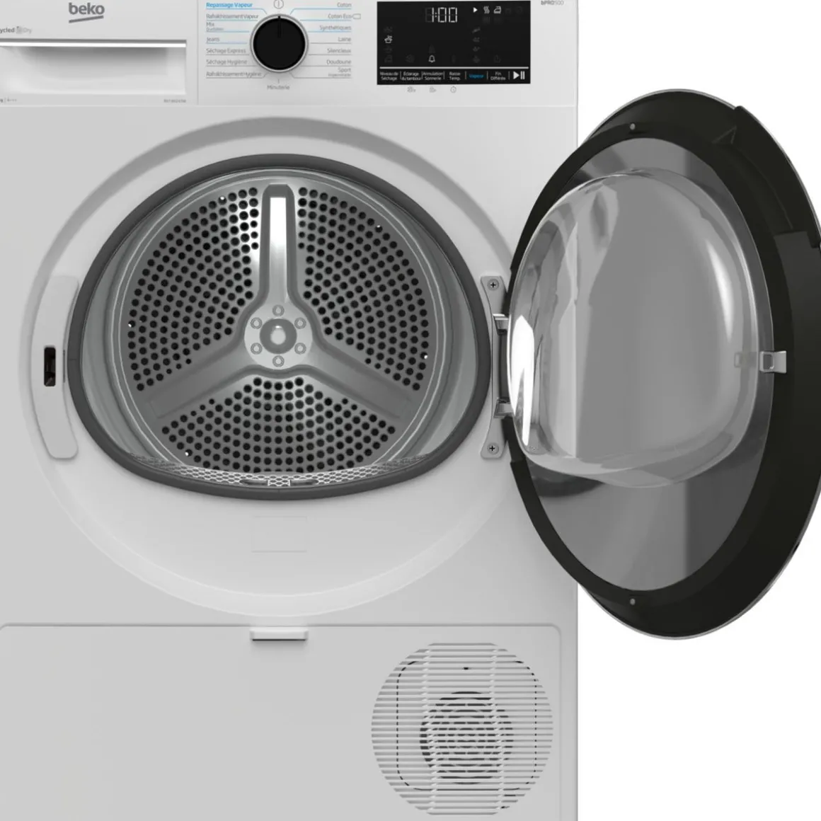 Bénéficiez d’un sèche-linge avec une fabrication éco-responsable, 30% des composants de ce sèche-linge sont fabriqués à partir de matériaux recyclés et de bouteilles en plastique recyclées. Économique, ce sèche-linge dispose de la classe énergétique A+++. Il est doté de la puissance de la vapeur et du programme spécial « Repassage vapeur », la technologie IronFinish permet d’obtenir un résultat de vêtements prêts à l’emploi. Ce sèche-linge possède une capacité de séchage de 8 kg et 15 programmes de séchage ce qui est idéale pour une famille. De plus, vous pouvez programmer un départ différé jusqu’à 24h avant.