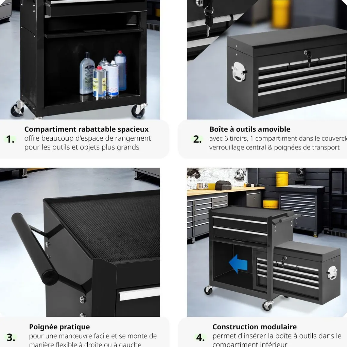 - Caisse à outils amovible et mobile.