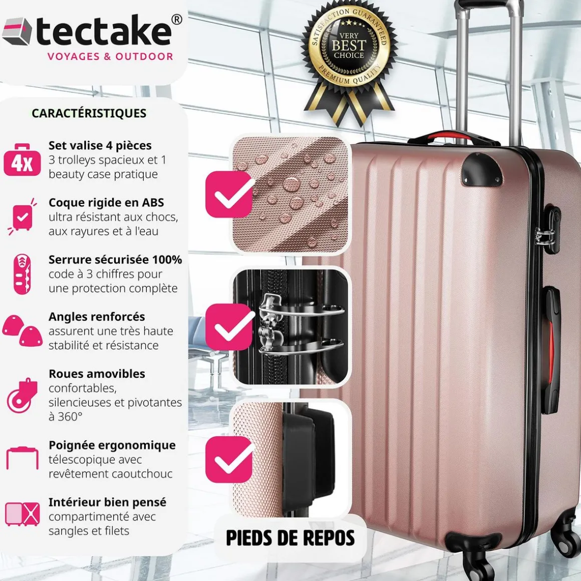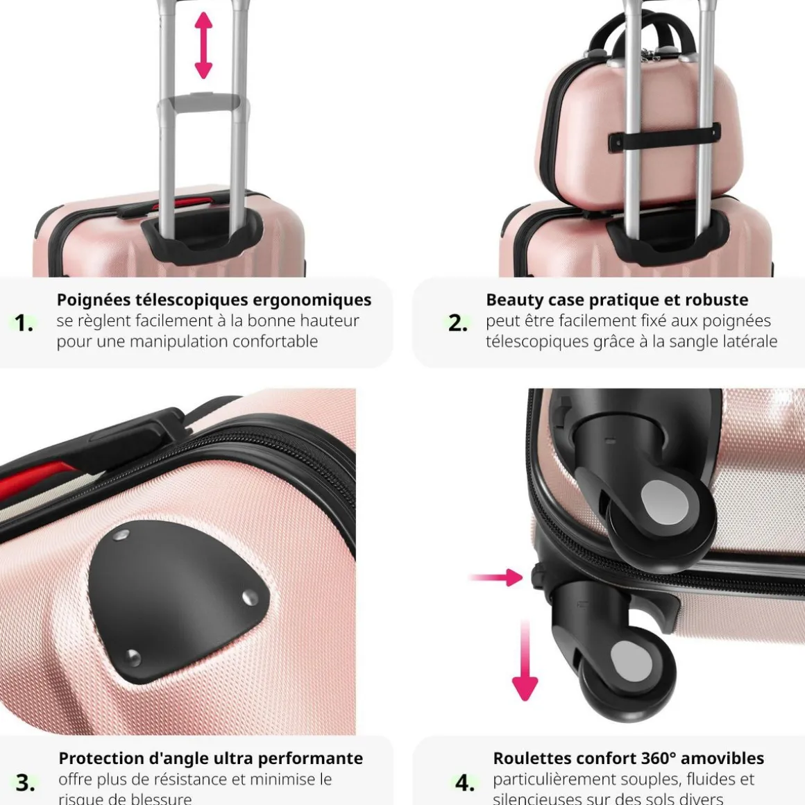 - Lot de 3 valises gigognes avec vanity aspect métallisé