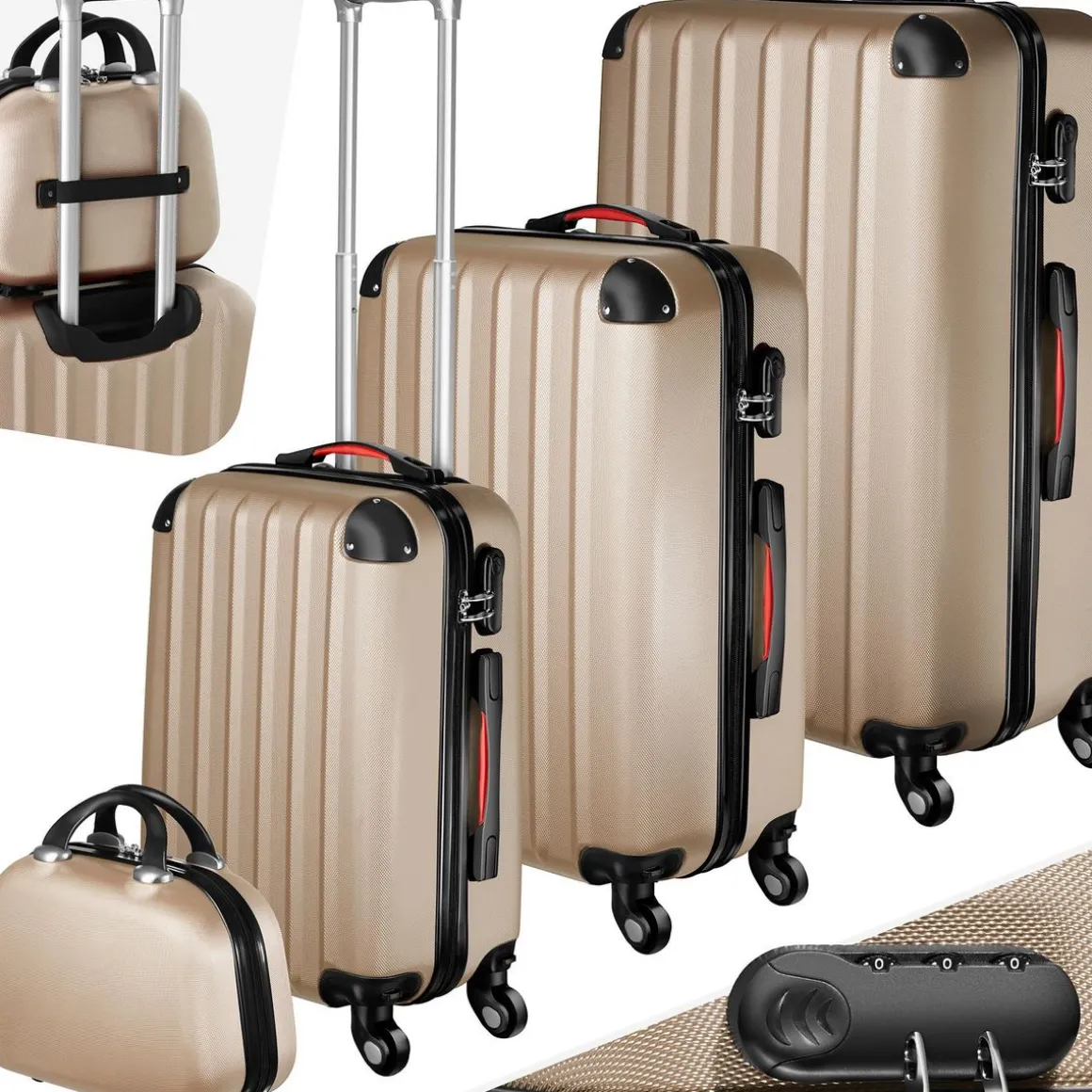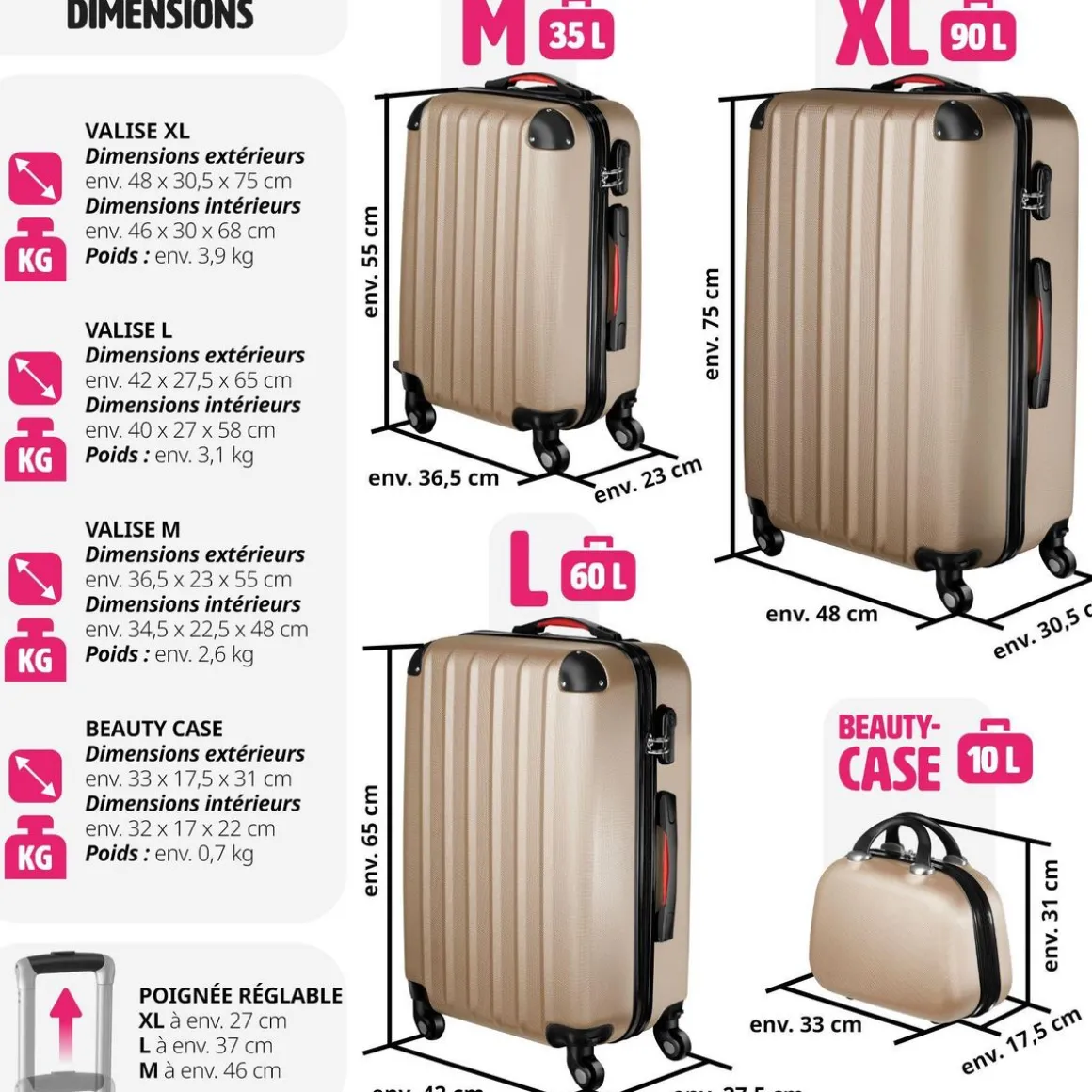 - Lot de 3 valises gigognes avec vanity aspect métallisé