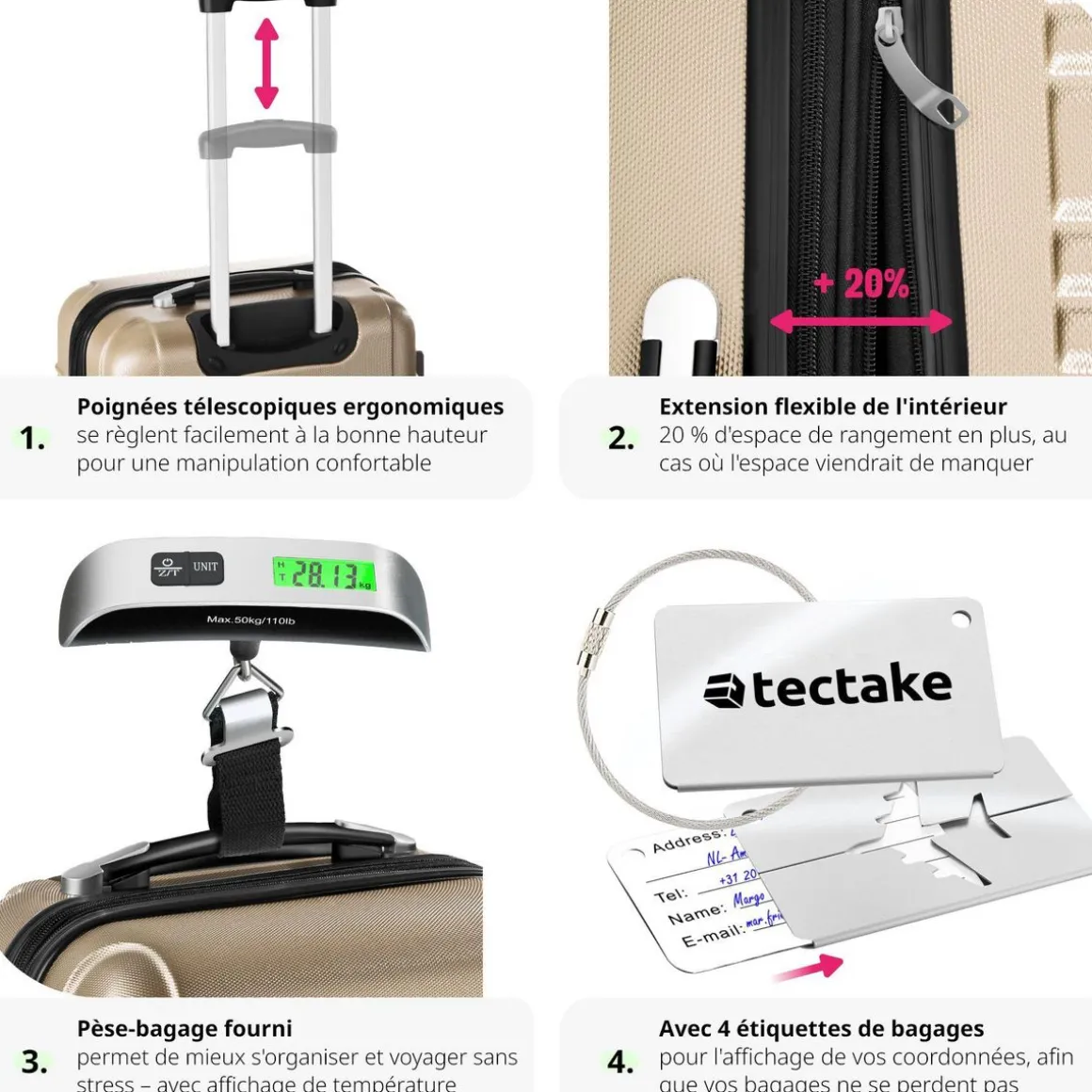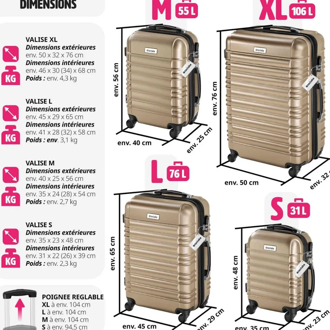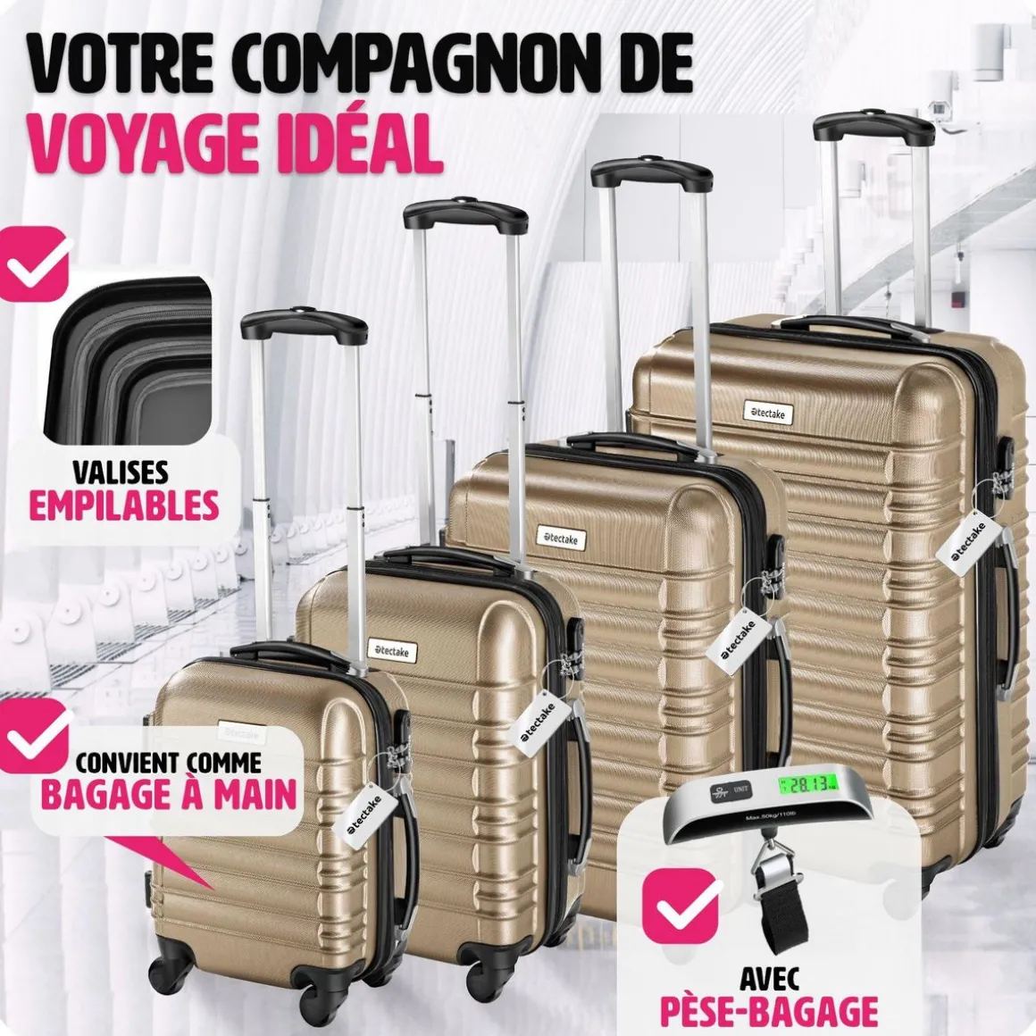 - Set de 4 valises composé de trolleys de différentes tailles, empilables les uns dans les autres