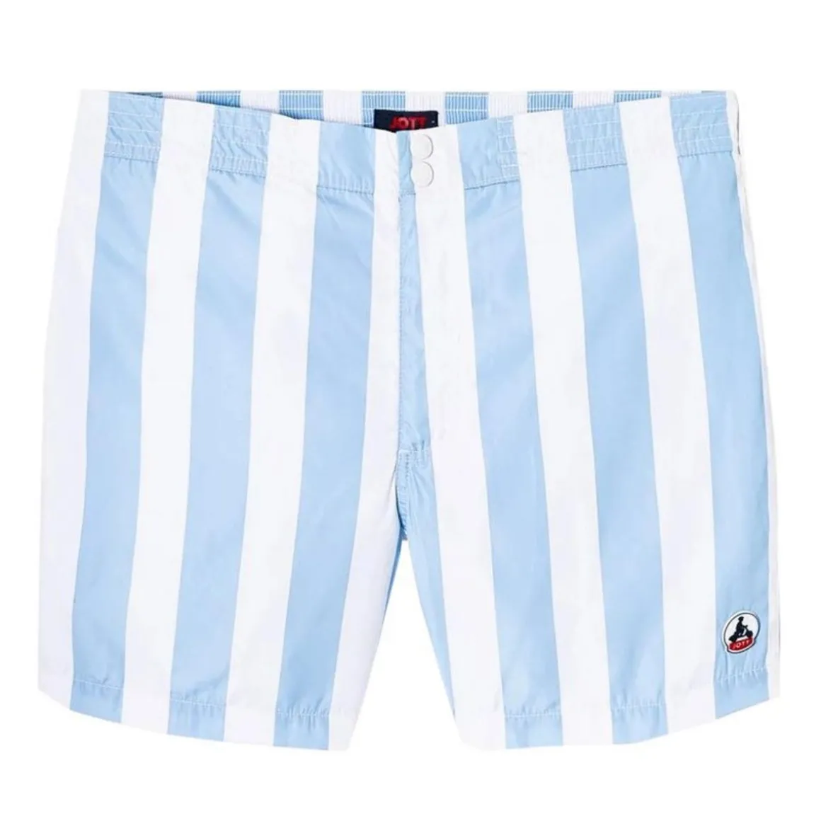 Craquez pour le short de bain de la marque JOTT !Coloris : Blanc/Bleu Taille élastique + CordonTissu impriméPoches latéralesComposition : 100% PolyesterLes maillots de bain et sous-vêtements ne sont ni repris, ni échangés, merci de votre compréhension !