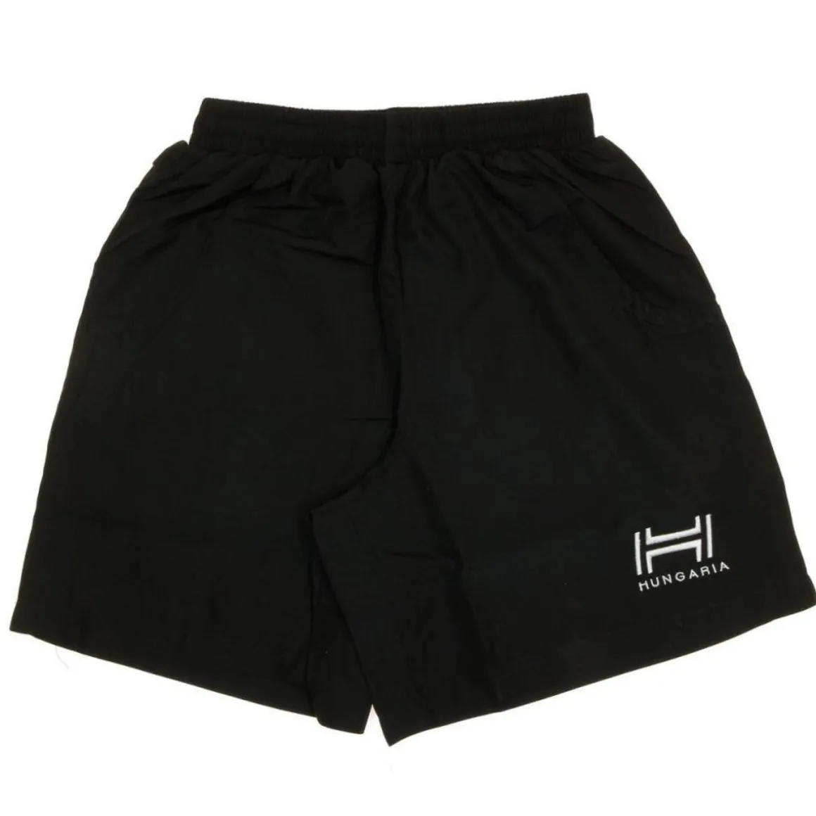 Short de sport NOIR pour enfant de la marque Hungaria ! Idéal pour le sport à l’école ! Ceinture élastique avec cordon de serrage Logo brodée HUNGARIA sur la cuisse droite Composition : 100% polyester