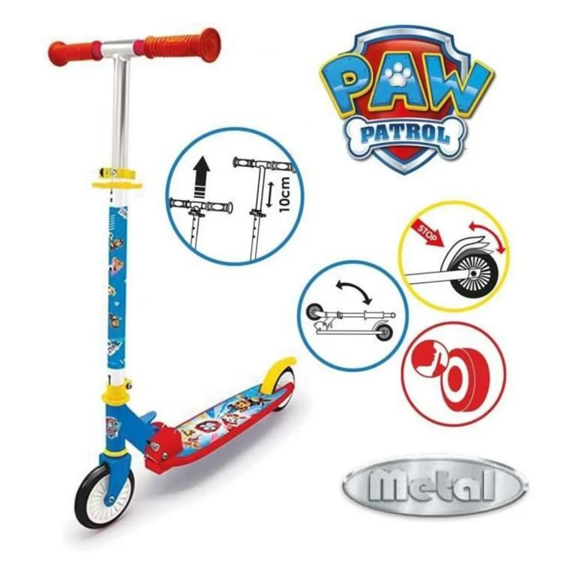 Smoby – Pat’ Patrouille Patinette 2 roues – Pliable – Roues silencieuses –