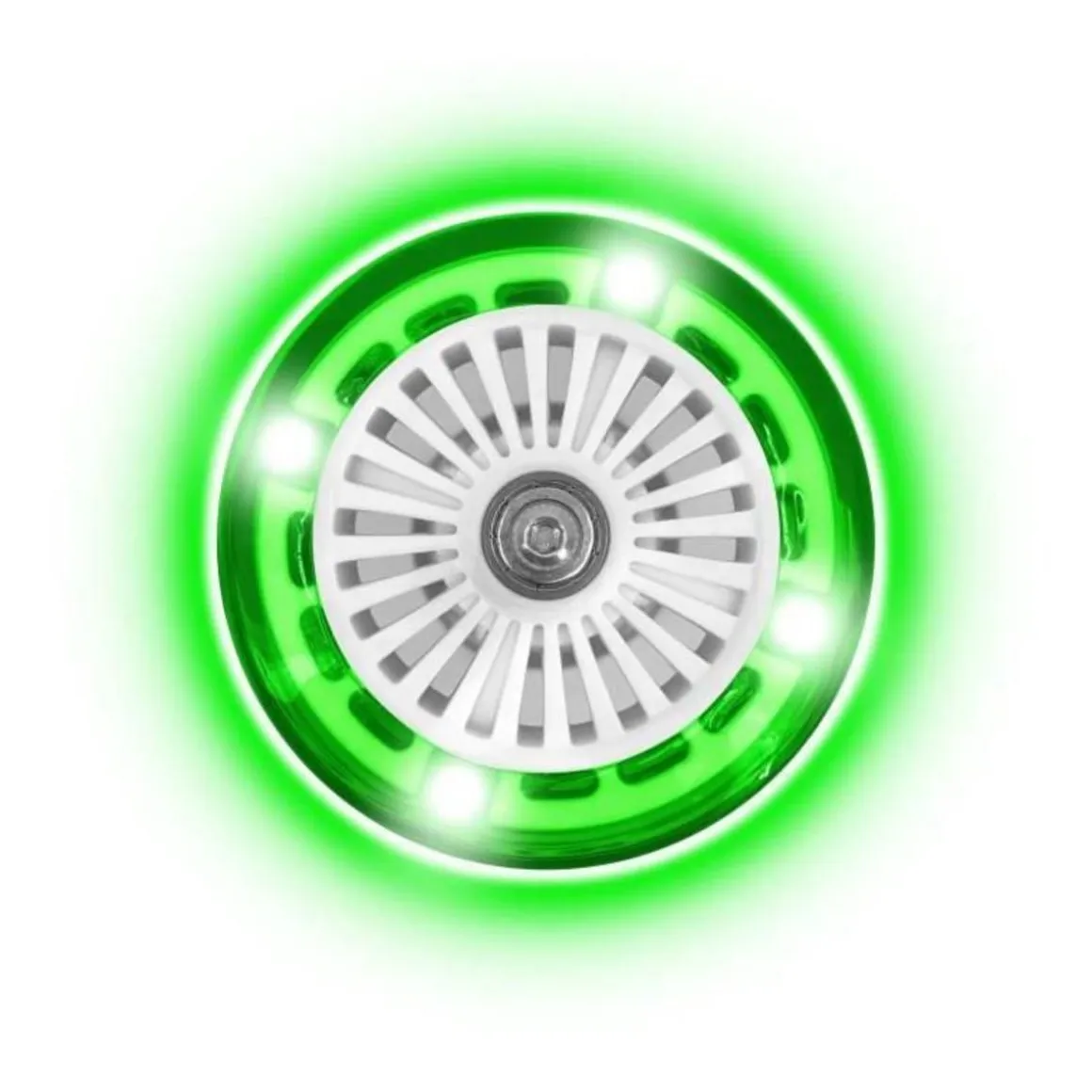 Trottinette 3 roues- Deux roues avant lumineuses qui s’illuminent en mouvement (fonctionne sans pile) – stable grâce aux 3 roues – plateau antidérapant – roulement ABEC 5 – Les deux roues avant s’inclinent pour tourner – Poignées anti-pincement – Frein arriere au pied