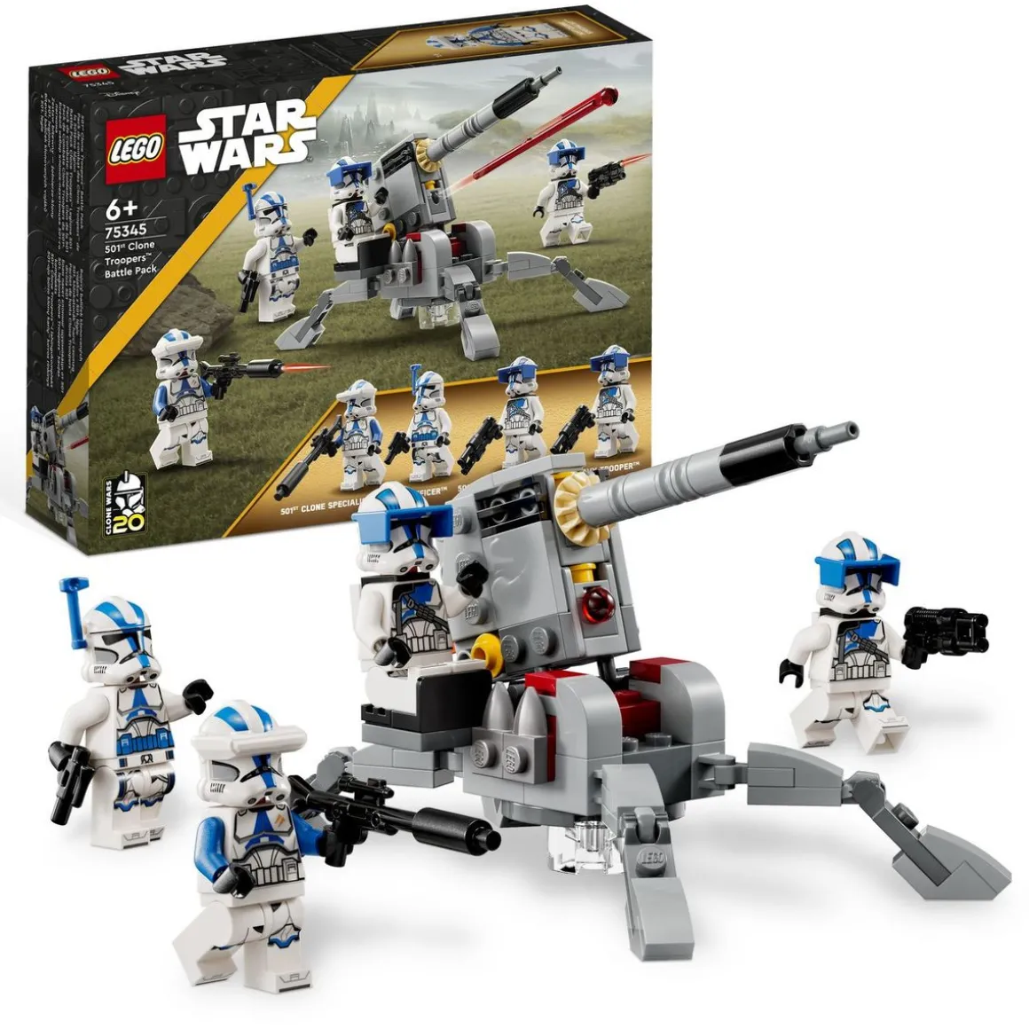 Star Wars 75345 Pack de Combat des Clone Troopers de la 501ème Légion, Jouet de Construction, 4 Minifigurines, Canon Anti-Véhicule AV-7, Lanceur