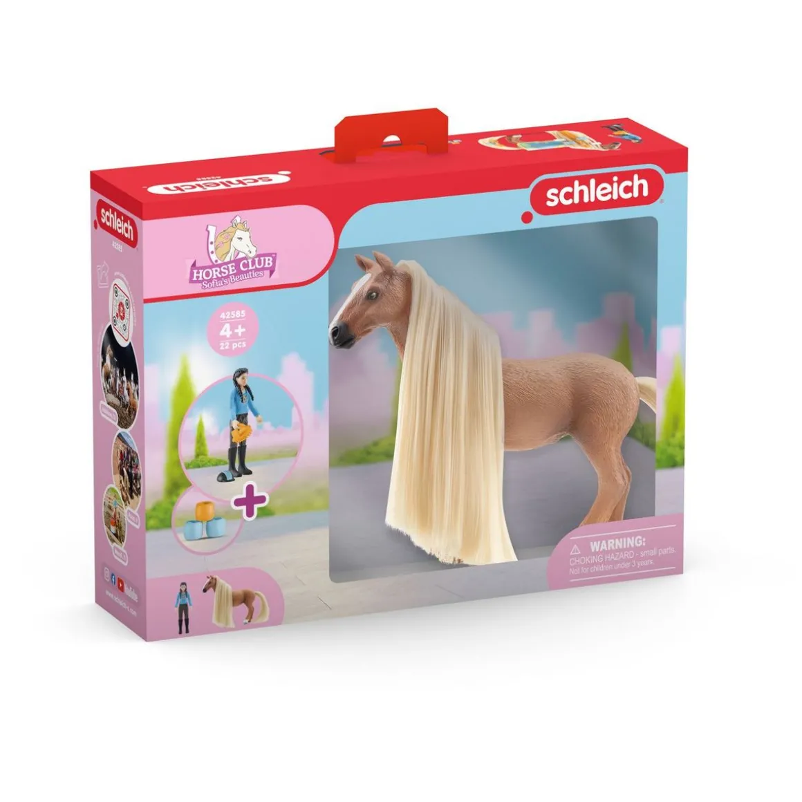 Ce que Kim aime autant que monter sa jument Criollo, c’est brosser la crinière et la queue somptueuses de son cheval. Le coffret de démarrage Kim & Caramelo, qui fait partie de la nouvelle collection Sophia’s Beauties, comprend un magnifique cheval Criollo à la crinière coiffable et une figurine Kim articulée.