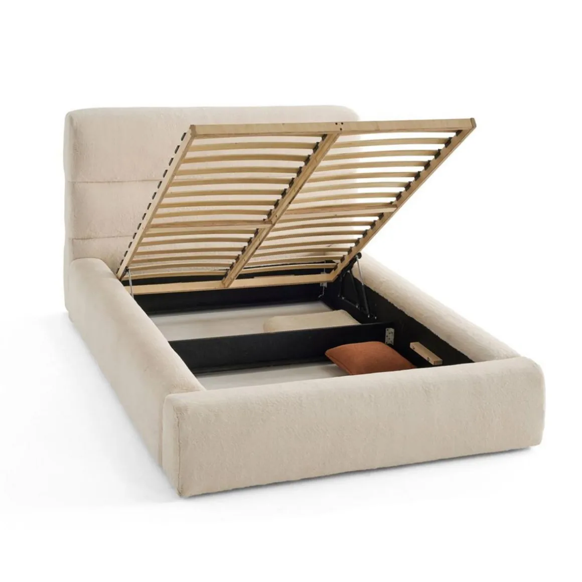 Choisir le lit Sunset, c’est aussi pouvoir profiter de finitions de très belle facture. Nous avons sélectionné un tissu en fausse fourrure, très doux et au toucher extraordinaire. Ce modèle dispose aussi de nombreux avantages, à commencer par son vaste coffre de rangement accessible sous le sommier à lattes fourni avec le lit. Avoir un espace de rangement supplémentaire dans une chambre n’est jamais négligeable. Vous pourrez y ranger et organiser votre linge de lit en fonction des saisons.