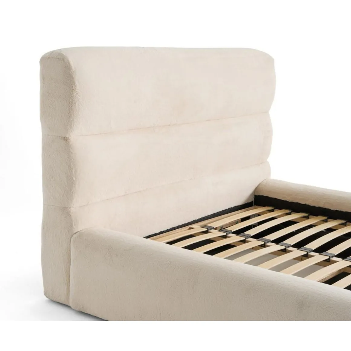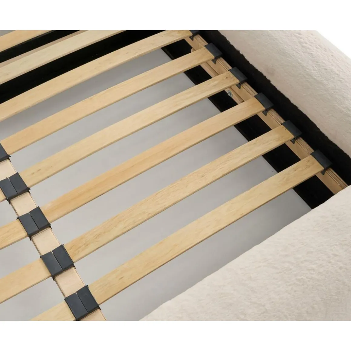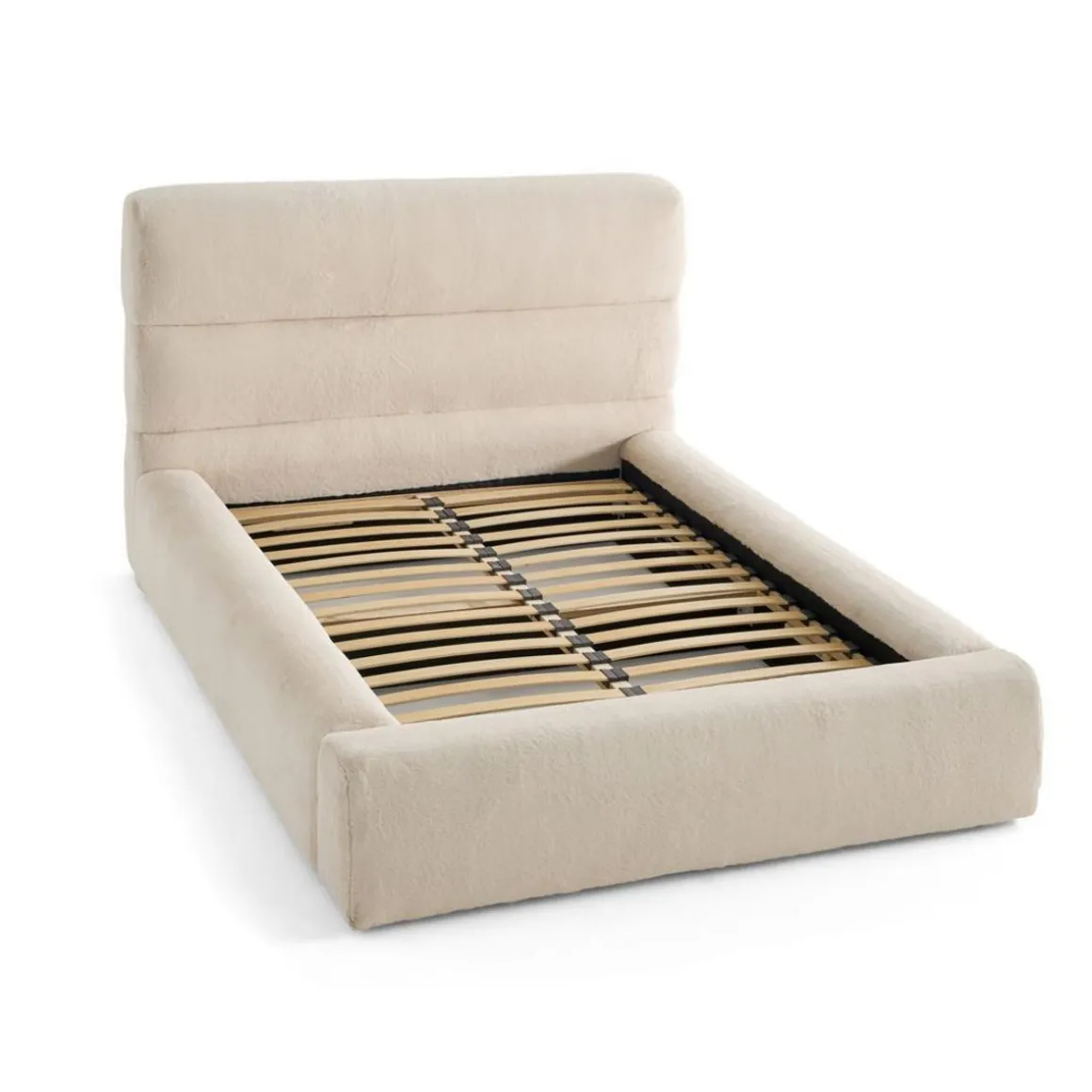 - Détail des matières : Matières principales : Panneaux de fibres – Essence de bois : Hêtre – Tête de lit : inclus – Sommier : inclus – Revêtement en fausse fourrure