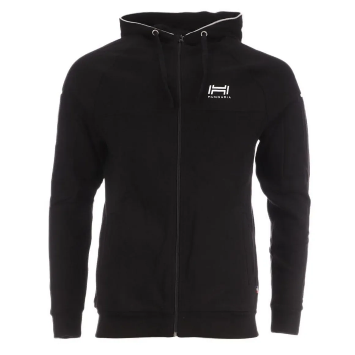 Craquez pour le sweat zippé de la marque HUNGARIA ! Coloris : Noir Manches longues Col capuche Zip sur toute la longueur Logo Imprimé sur la poitrine Composition : 80% Coton, 20% Polyester
