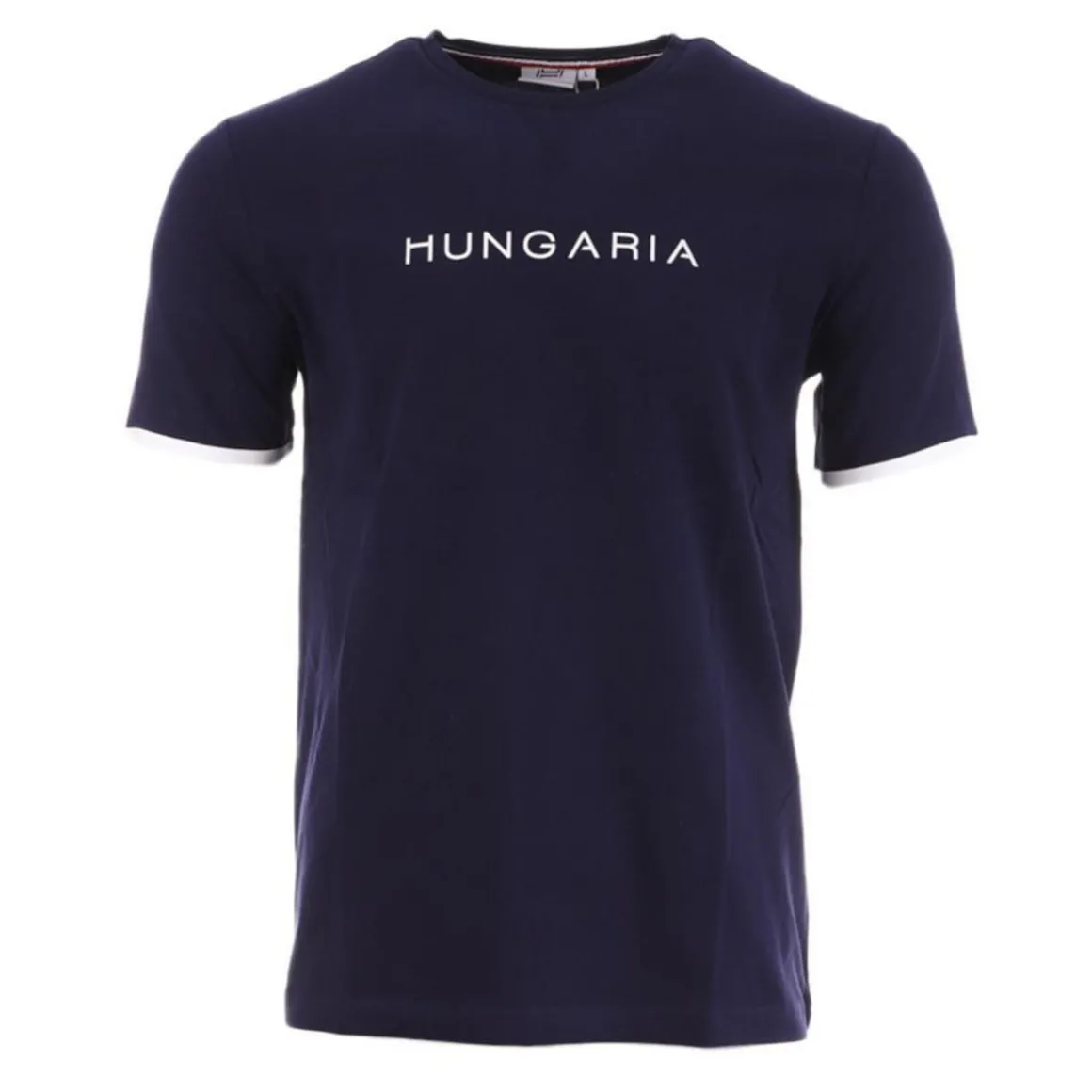 Optez pour le T-shirt homme de la marque HUNGARIA ! Coloris : Marine Col rond Manches courtes Logo imprimé sur la poitrine Composition : 100% Coton