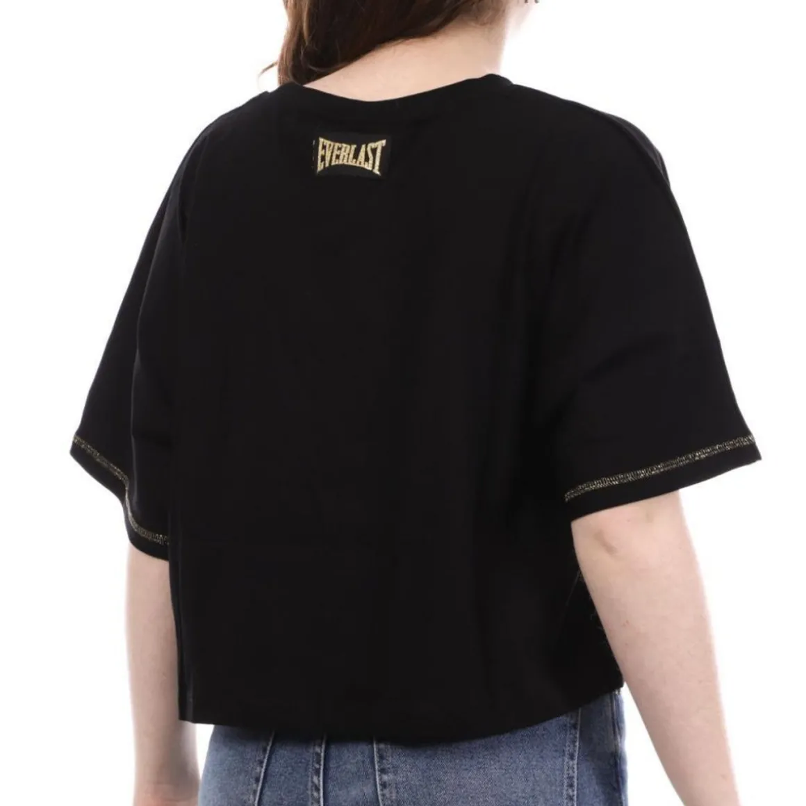 Optez pour le t-shirt femme de la marque Everlast Manches courtes Col rond Coupe courte Logo Everlast sur la poitrine Coloris : Noir Composition : 100% coton