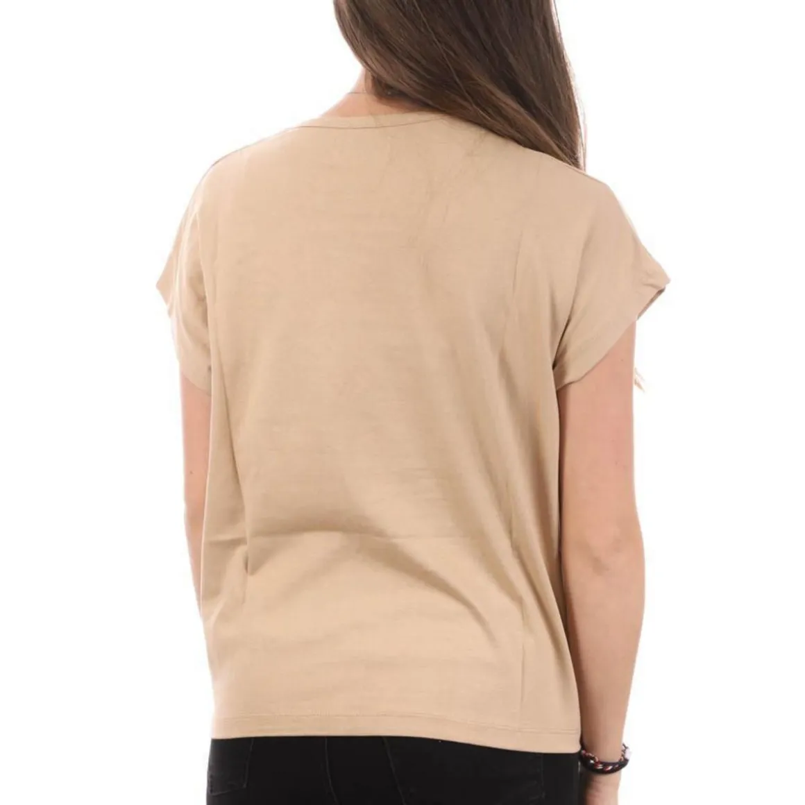 Optez pour le T-shirt femme de la marque LEE COOPER Coloris : Beige Manches courtes Col rond Imprimé sur l’avant Composition : 100% coton