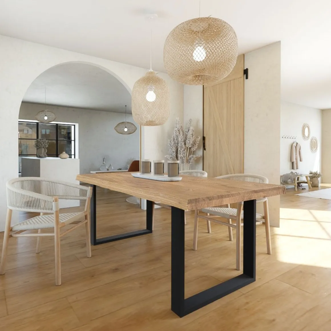 Aussi esthétique que facile à entretenir, la finition huilée du plateau de cette table en chêne massif lui donne un charme authentique ultra tendance. Les pieds noirs en métal twistent l’aspect brut en y apportant une touche design.