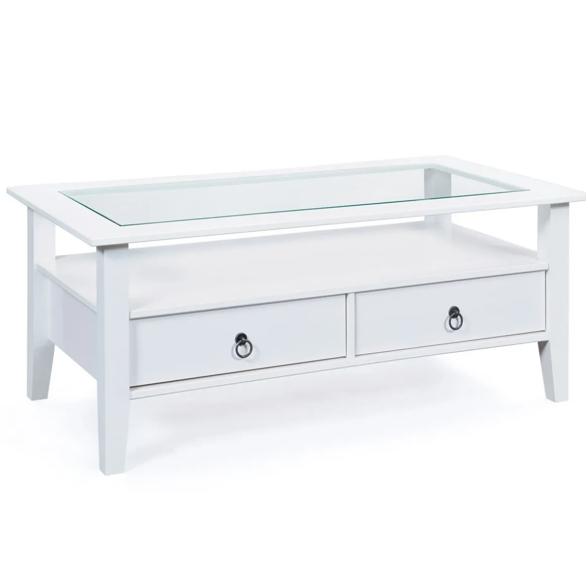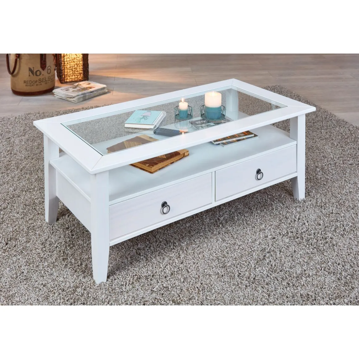 La table basse dispose de 2 tiroirs de rangement