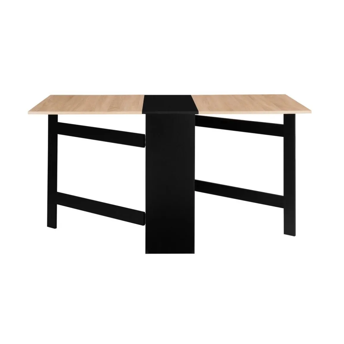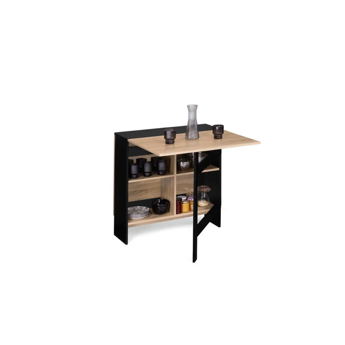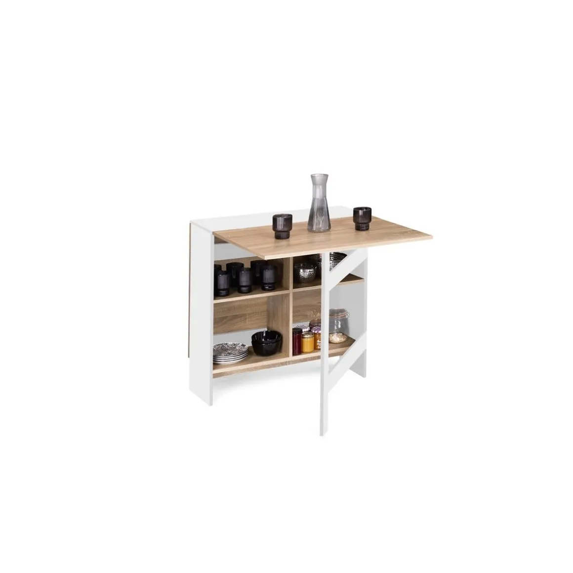 Table repas console pliable Edi plateau naturel et pieds blancs avec rangements