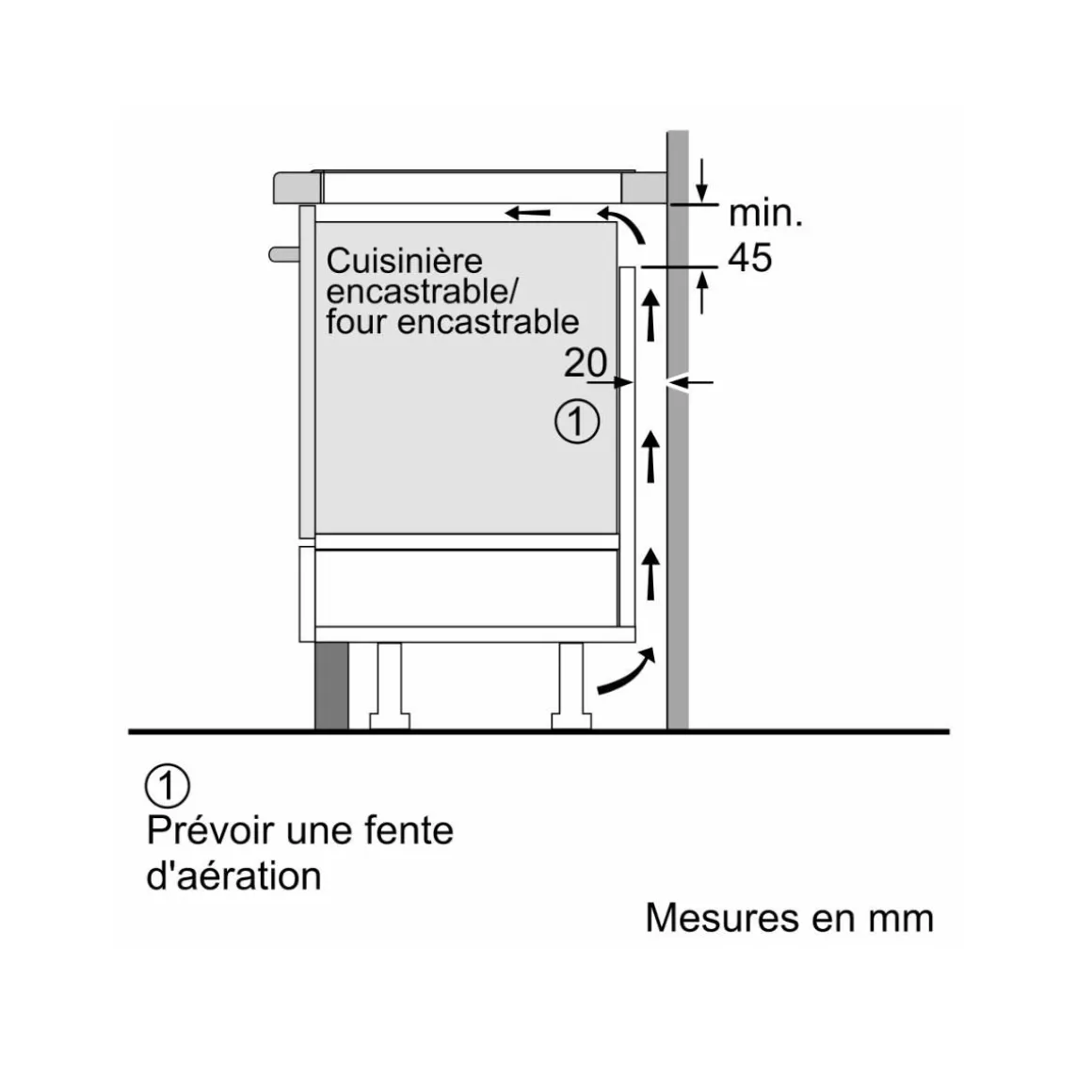 Largeur minimum de la niche d’encastrement : 750 mm.