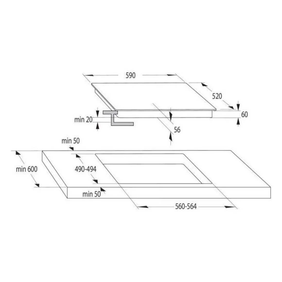Encastrement H x L x P (cm) : 5.4 x 56-56.4 x 49-49.4.