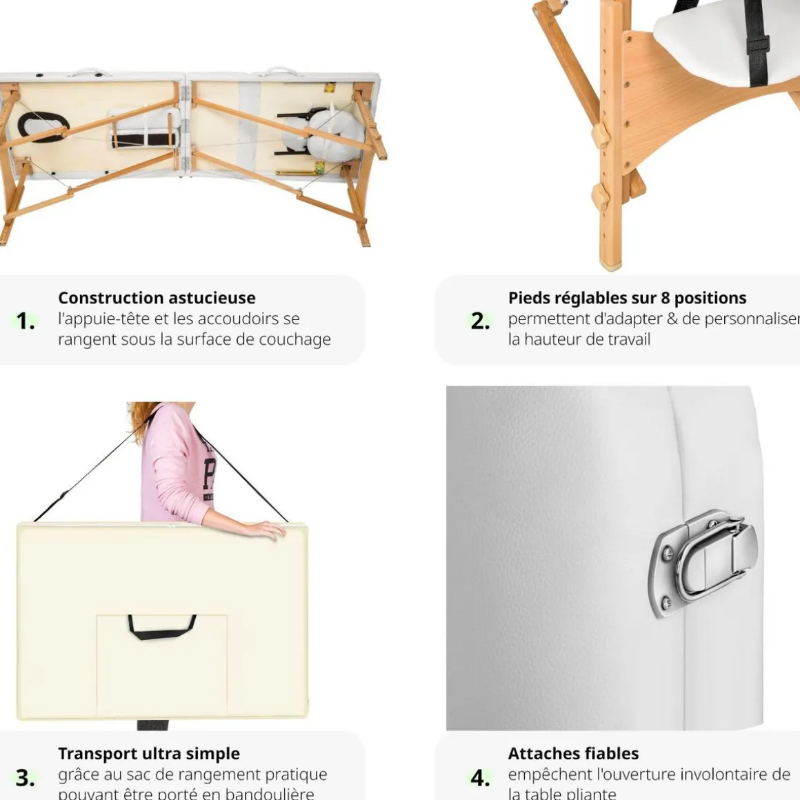 En résumé, la Table de massage Portable Pliante 2 zones FREDDI est le choix parfait pour ceux qui cherchent une table de massage alliant confort, praticité, et qualité. Ne manquez pas l’opportunité d’améliorer votre bien-être avec cet outil indispensable. Commandez dès maintenant et profitez de la livraison rapide et gratuite pour commencer à transformer vos moments de relaxation en une expérience inoubliable.