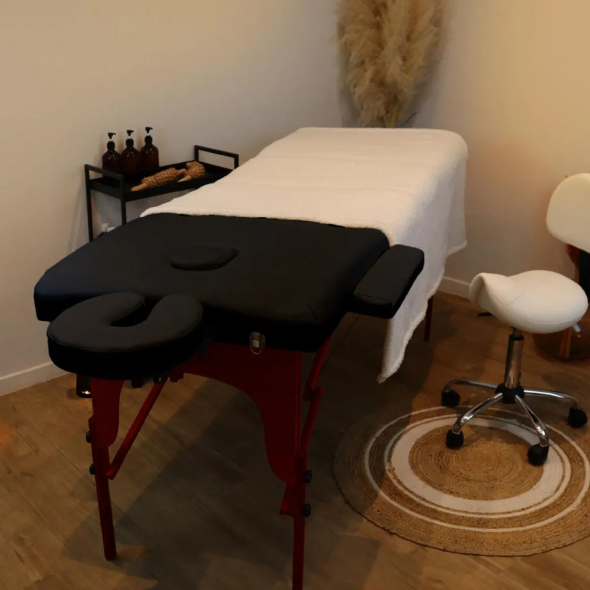 Table de massage pliante 3 zones en bois foncé avec panneau Reiki + Accessoires et housse de transport – Noir