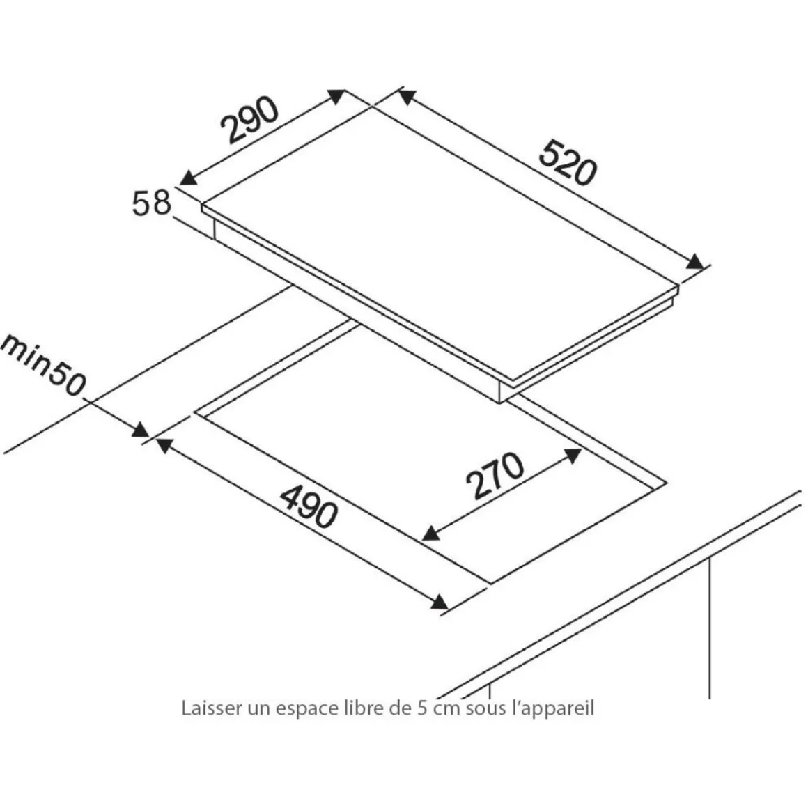 Type d’encastrement : A recouvrement plan de travail.