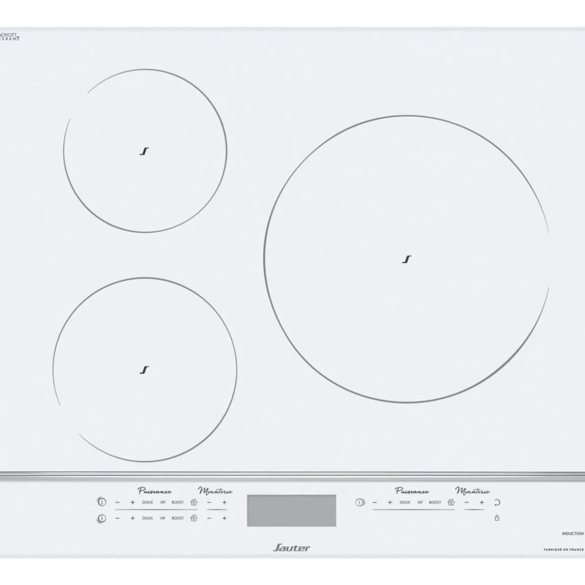 | Sécurités | arrêt automatique, coupure en cas de débordement, anti surchauffe, verrouillage du clavier, témoin de chaleur résiduelle, détection d’absence de récipient, détection de petits objets, témoin de mise sous tension | |