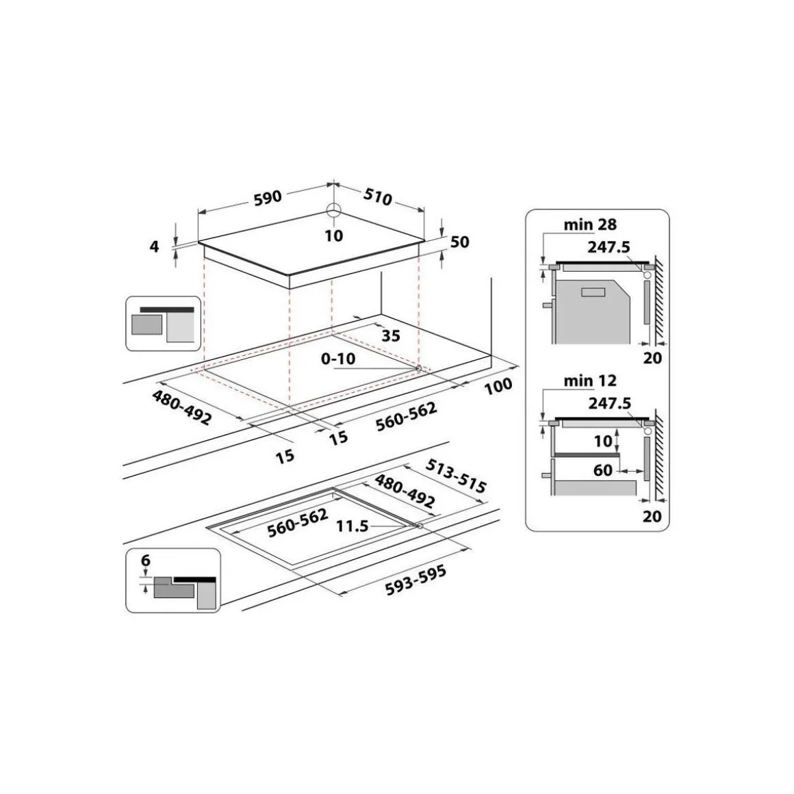 | LxHxP (encastrement) | 56 x 5 x 48 cm | |