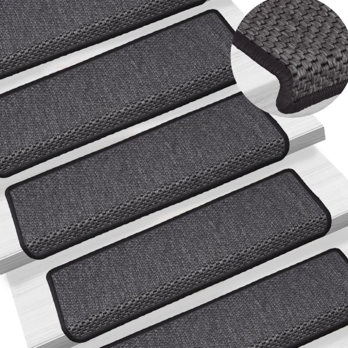 Ces tapis sont faits d’un tissu solide a l’aspect de sisal, donc ils sont insonorisants, antiderapants, chauds et confortables. Ces tapis d’escalier sont egalement lavables et sont plies pour proteger a la fois le haut et l’avant de l’escalier. Les bandes adhesives au dos permettent de fixer facilement et rapidement ces tapis aux escaliers.