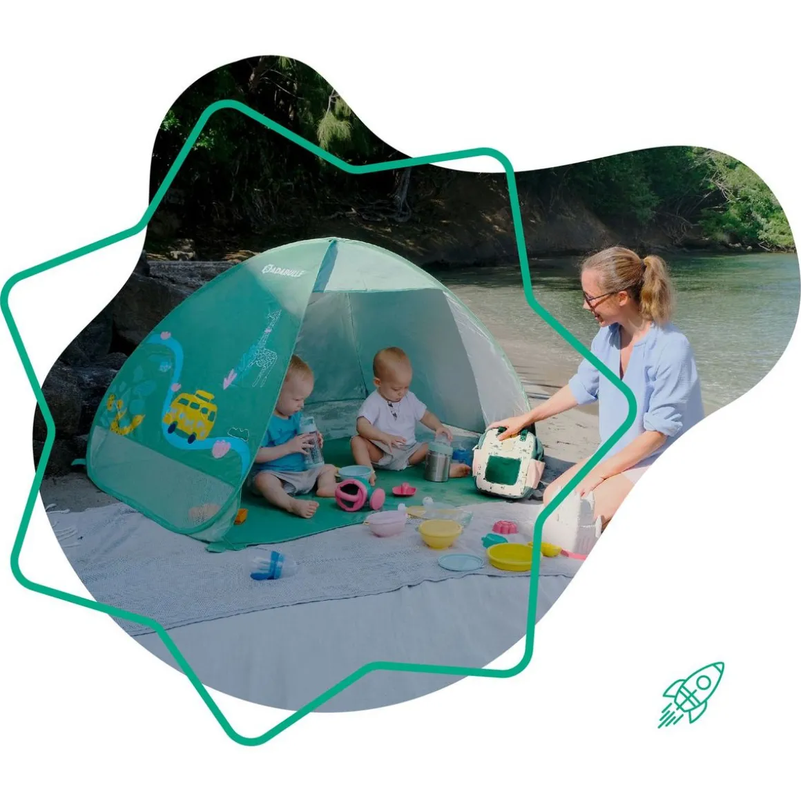 • Maxi format dépliée (L.125 x l.100 x h.85 cm) et encombrement mini une fois repliée (42 cm diamètre)