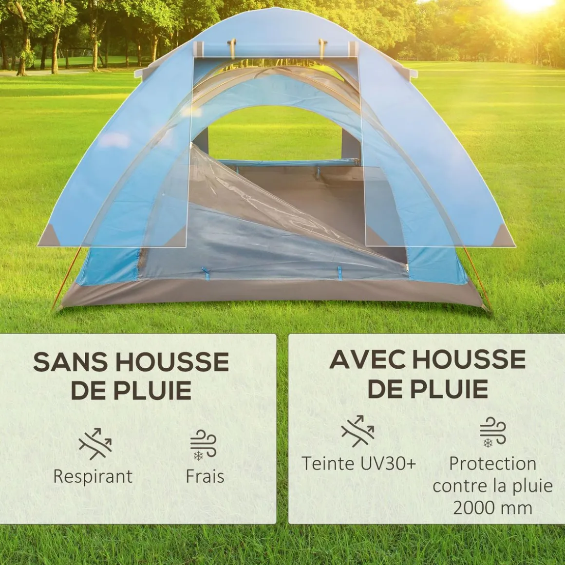 – Tapis de sol intégré à la tente