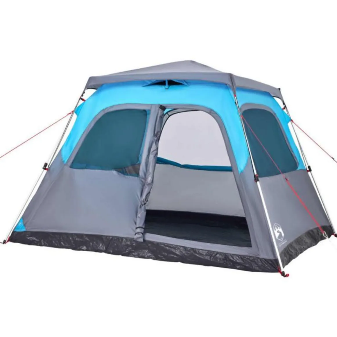 Cette tente familiale au look moderne vous protège des intempéries et offre un endroit confortable pour des aventures partout. Conception imperméable à l’eau tout autour : cette tente de camping, fabriquée en polyester avec un revêtement PU, est imperméable et résistante au vent. Les coutures étanches empêchent efficacement l’infiltration de l’eau de pluie, tandis que le tapis de sol robuste contribue à maintenir l’intérieur sec et confortable.Système de dégagement rapide : installez la tente sans effort grâce au système de dégagement rapide ! Posez la tente, étendez les poteaux pré-assemblés jusqu’à ce qu’ils s’enclenchent, et le tour est joué !Double-toit amovible : le double toit amovible peut être fixé au sommet de la tente pour une protection contre les intempéries et plus d’intimité.Accès pratique au cordon électrique : le E-port vous permet de connecter facilement une rallonge à votre tente à partir d’une source d’alimentation externe.Légère et portable : le design pliable et léger vous permet d’emballer facilement la tente et de la ranger dans le sac de transport inclus pour la transporter facilement. Attention :Tenir toutes les flammes et les sources de chaleur loin du tissu de ce produit.