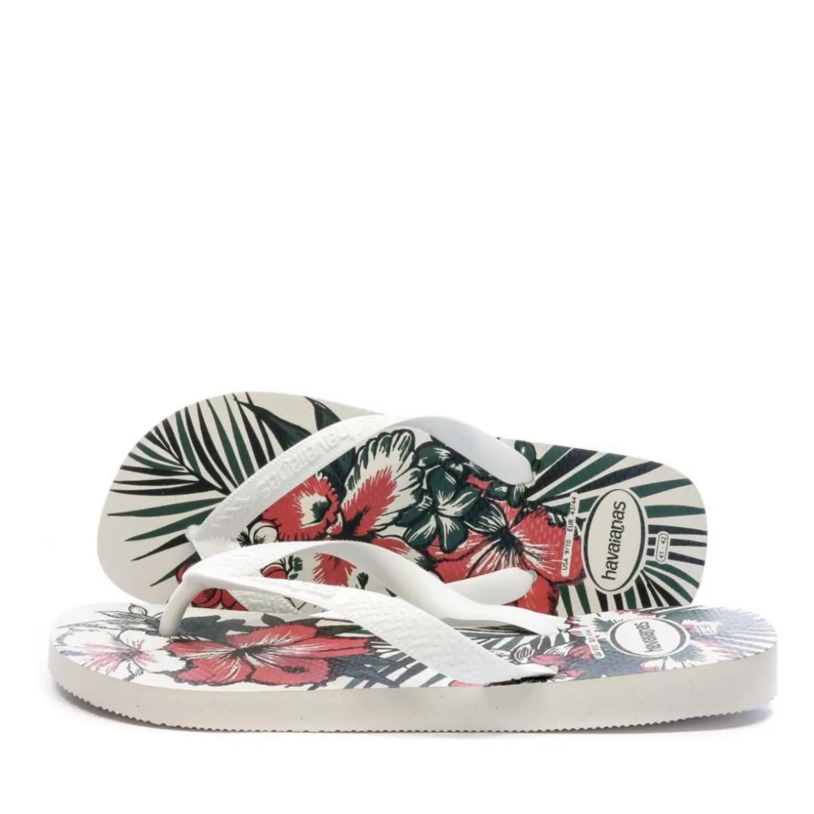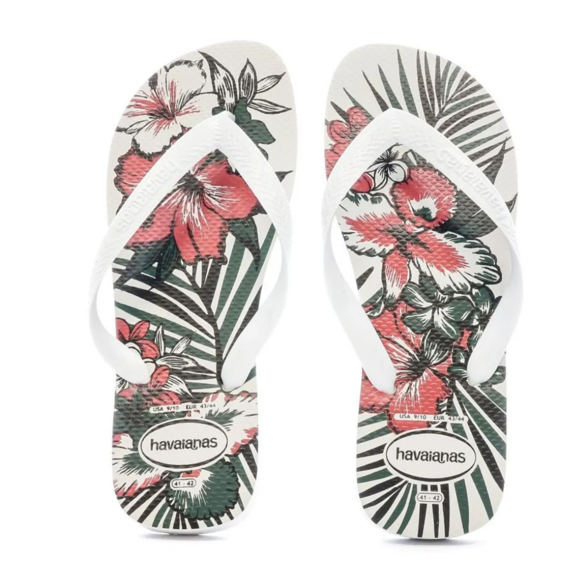 Optez pour ces tongs de la marque Havaianas ! Coloris : Blanc, rouge, vert Semelle synthétique Bride plastique Motifs imprimés sur la semelle