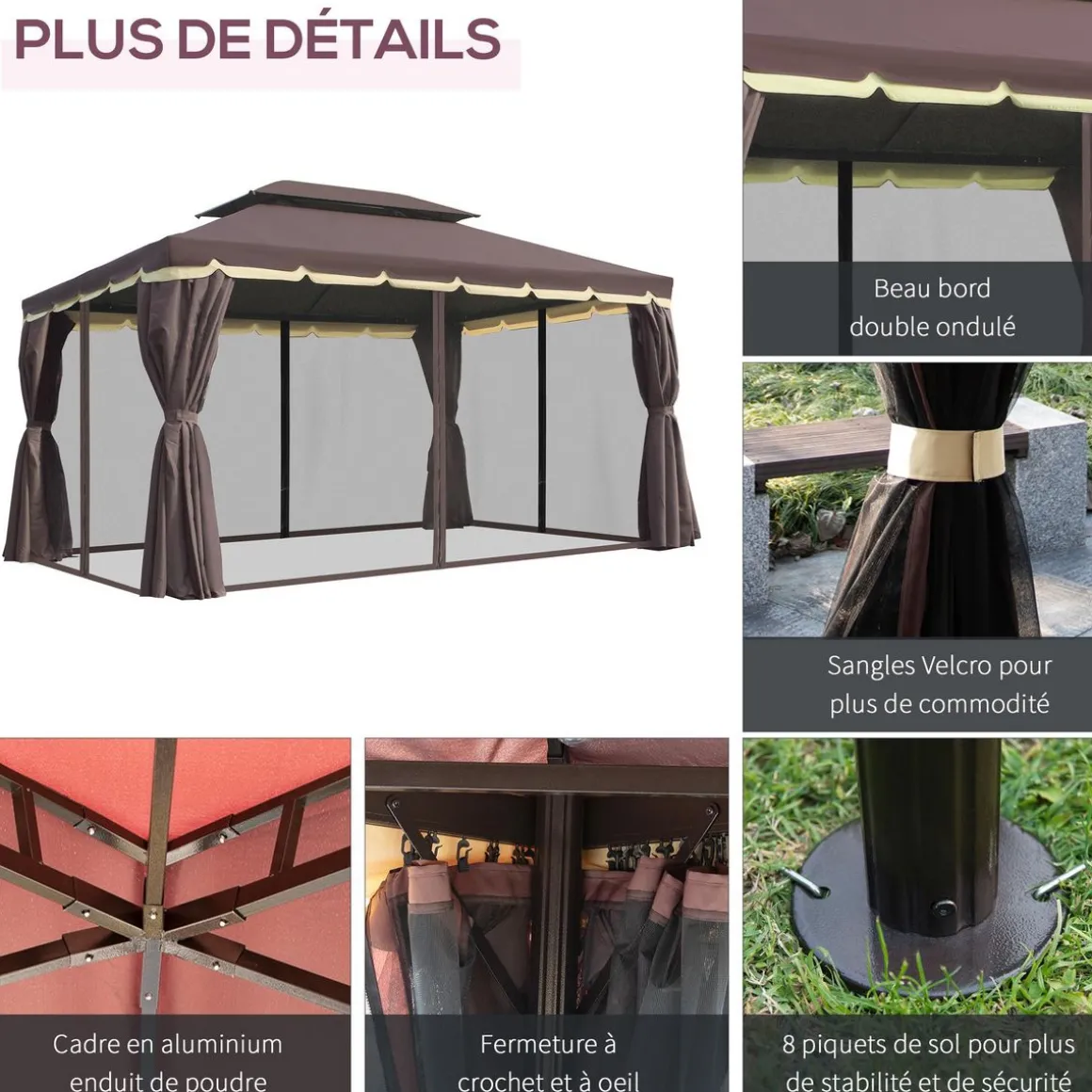 – Accessoires fournis : 8 piquets d’ancrage au sol