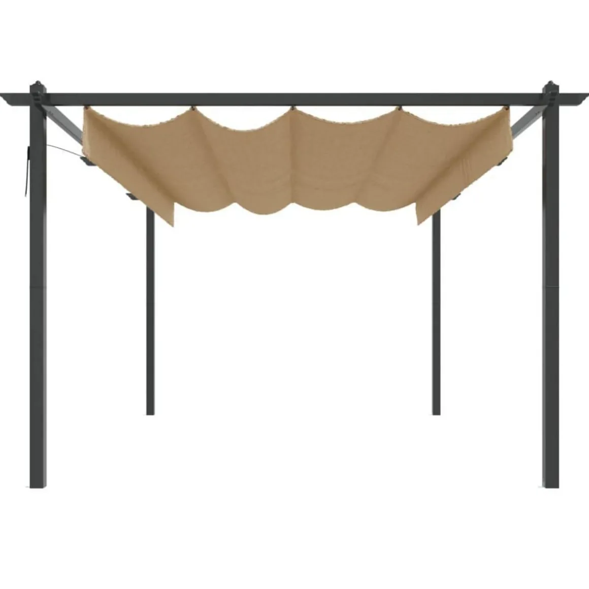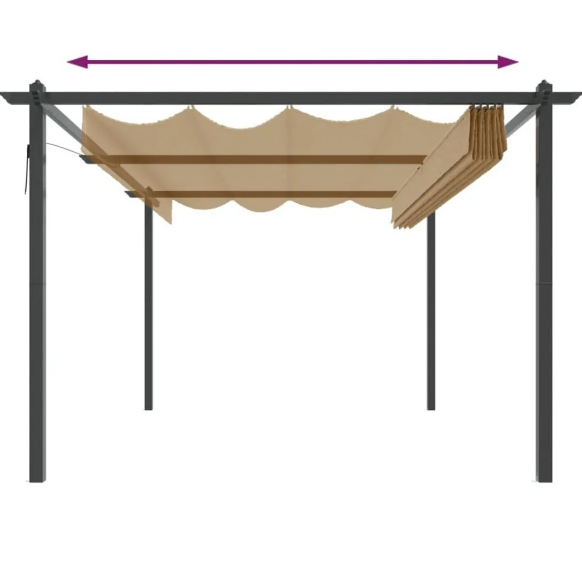 Ce belvedere d’exterieur est fabrique avec un cadre en acier enduit de poudre, ce qui le rend robuste et stable. Il est equipe d’un toit retractable recouvert de PA, qui resiste aux UV et a l’eau. Vous pouvez facilement faire pivoter et ajuster le toit a la position ideale en secouant simplement la perche a main. Ouvrez-le lorsque vous voulez profiter du soleil et fermez-le pour vous mettre a l’ombre ou vous abriter. Ce belvedere est un choix parfait pour vos activites de plein air.
