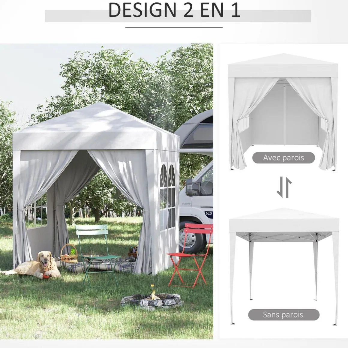 – Tonnelle composée de 4 côtés amovibles (2 arrières avec zip et 2 latérales) pour une parfaite adaptabilité en fonction des conditions climatiques