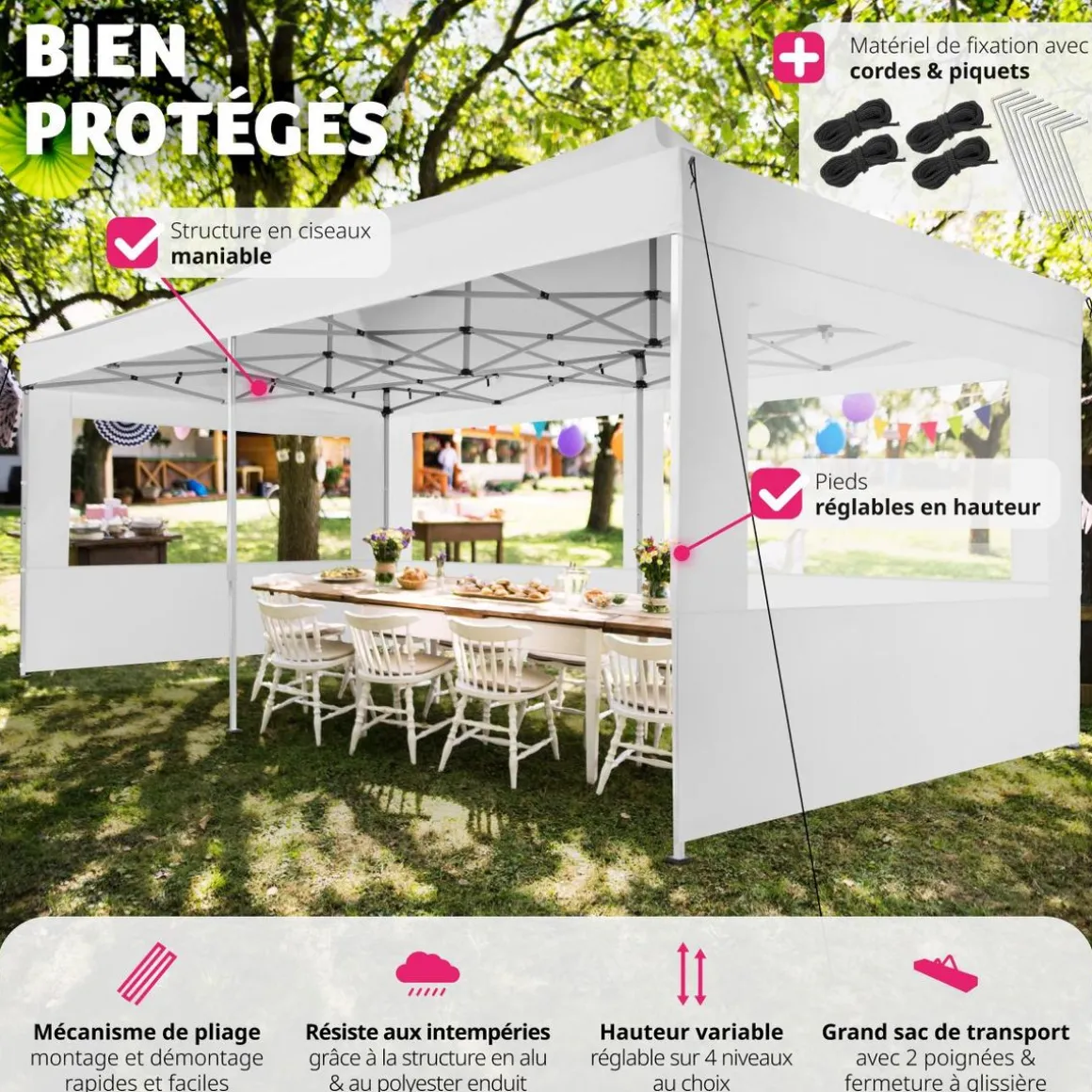 - Épaisseur de la toile du toit: 240 g/m²