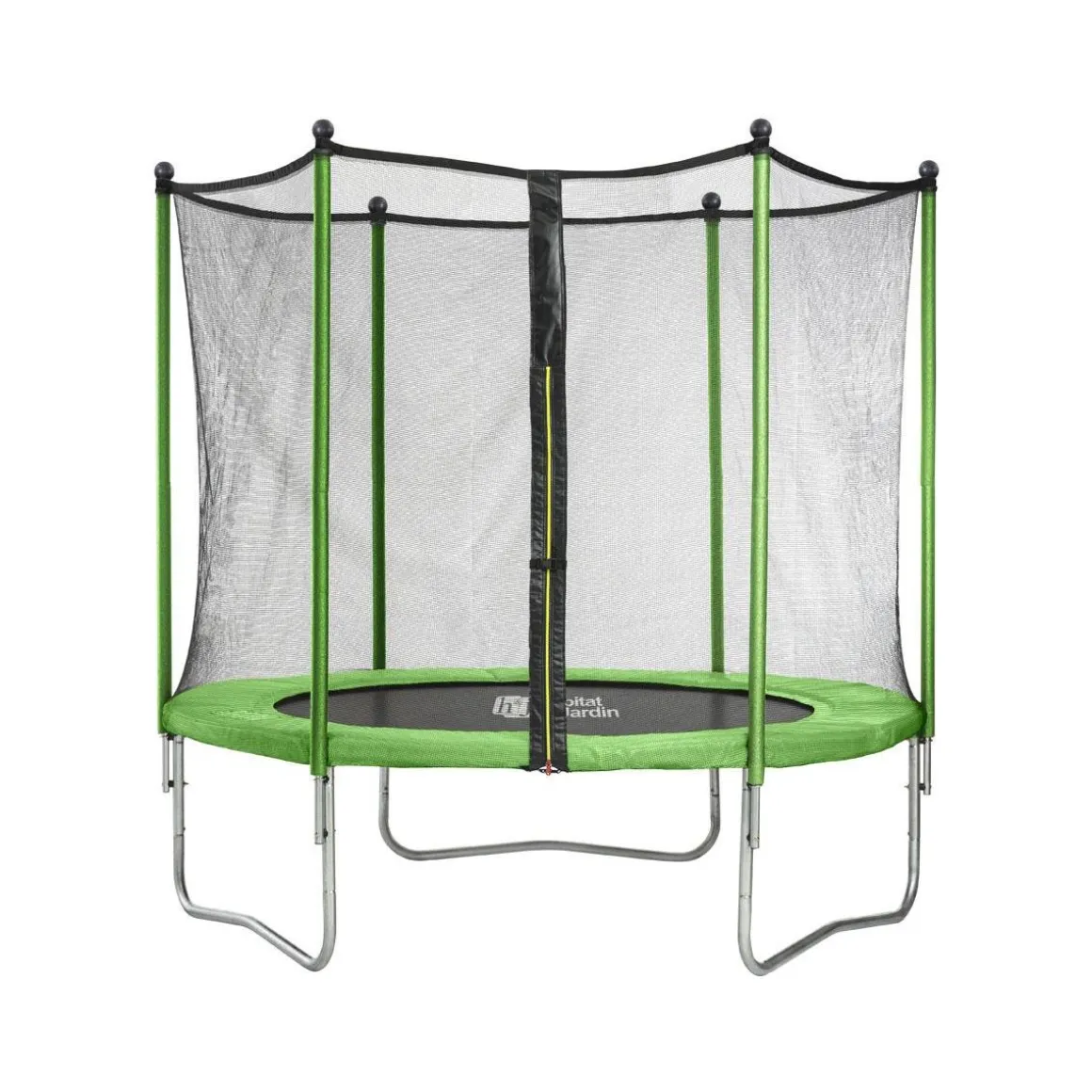 Hauteur totale (tapis de saut + filet de protection) : 2.05 m.