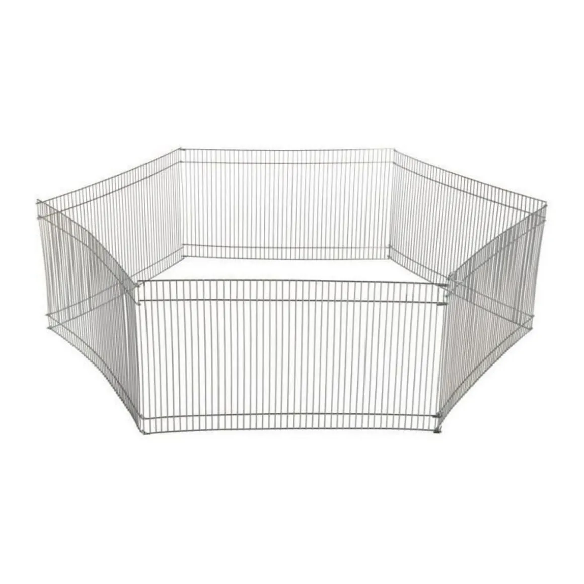 Enclos – En métal galvanisé – Pour usage intérieur – 6 éléments de 48x25cm – Offre un grand espace de liberté a l’animal – Extensible avec d’autres enclos – Dimensions : Ø90x25cm – Pour petit animal.