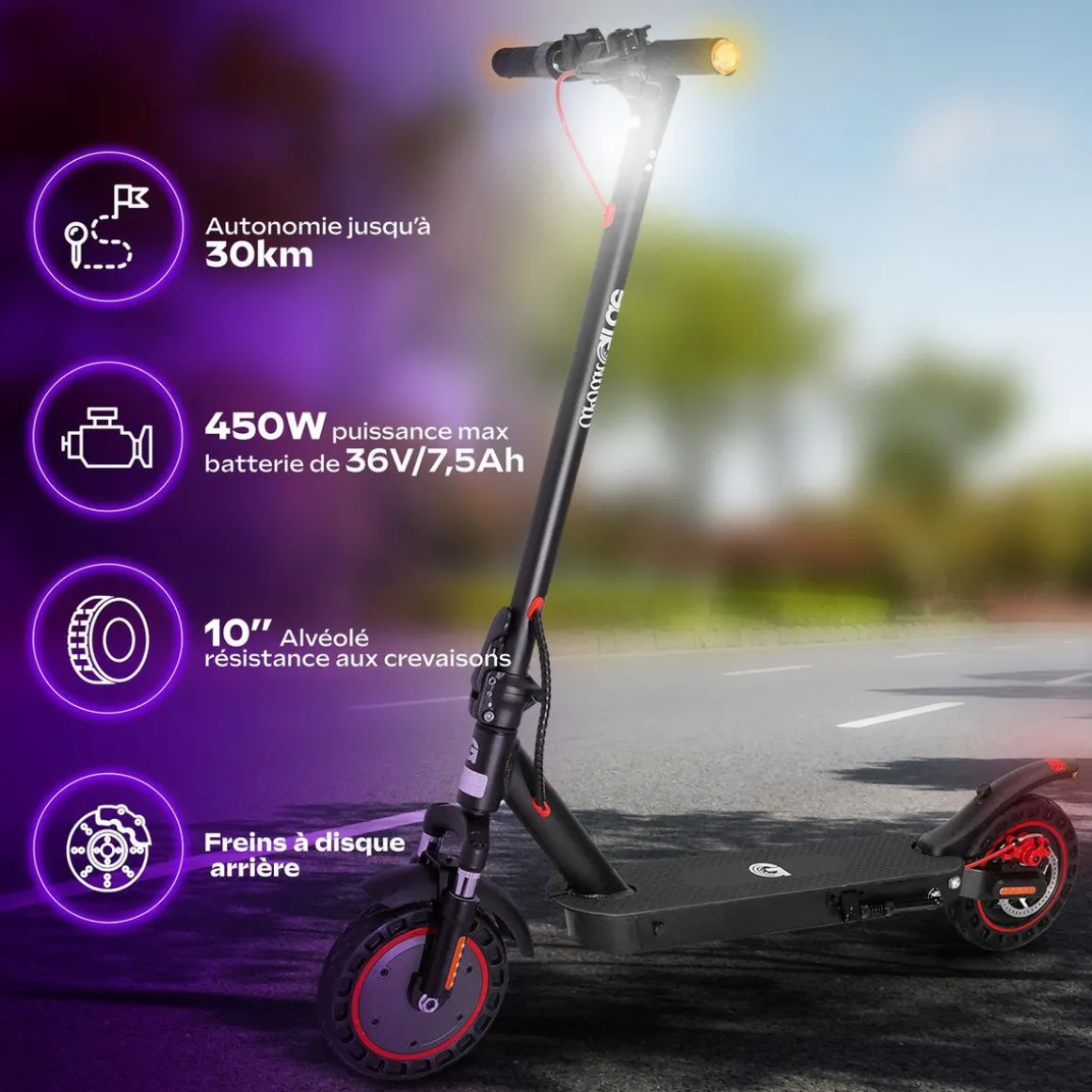 | Conseils de sécurité | Adaptez votre vitesse et méfiez-vous des revêtements (pavés, gravillons, route humide…) qui peuvent facilement vous déstabiliser. Respectez la réglementation routière | |