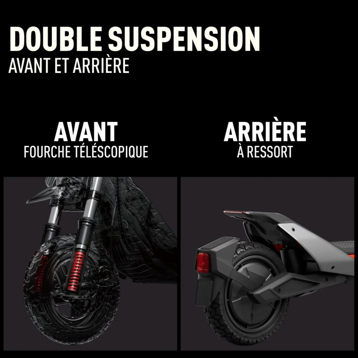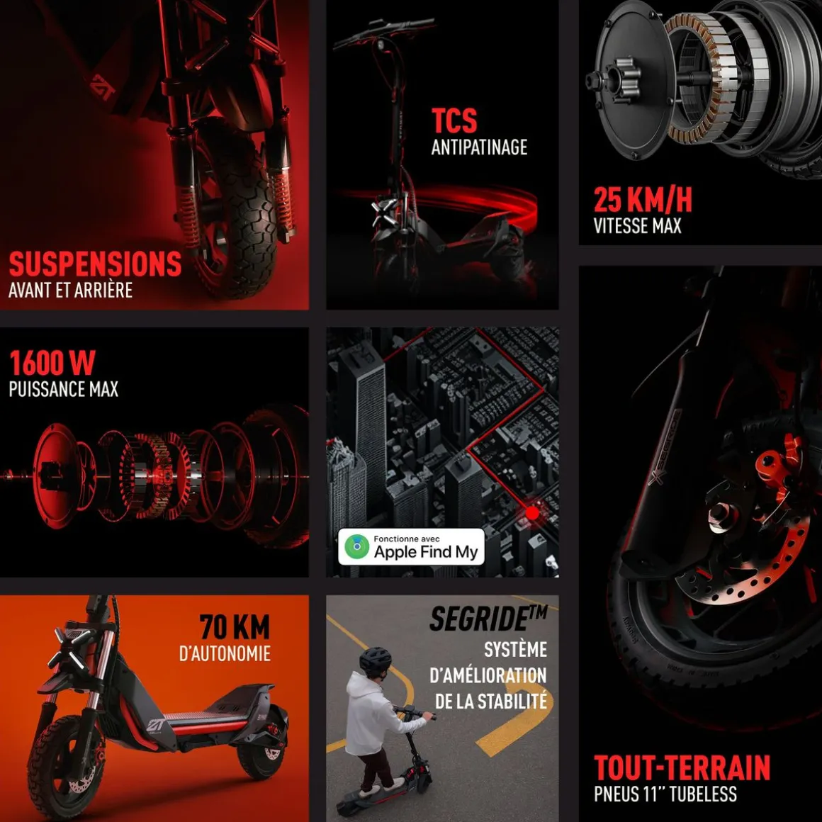 La vitesse et l’autonomie varient selon le terrain, la vitesse et le poids de l’utilisateur.